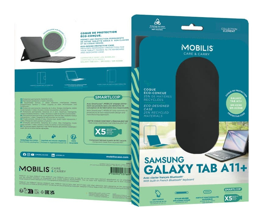 Mobilis ELEMENT Case Galaxy Tab A11+/A9+. Type etui: Folioblad, Merkcompatibiliteit: Samsung, Compatibiliteit: Galaxy Tab A11+ (SM-X230 / SM-X236B) - Tab A9+ (SM-X216R / SM-X210R / SM-X216 / SM-X210), Maximale schermgrootte: 27,9 cm (11"). Bluetooth. Gewicht: 322 g