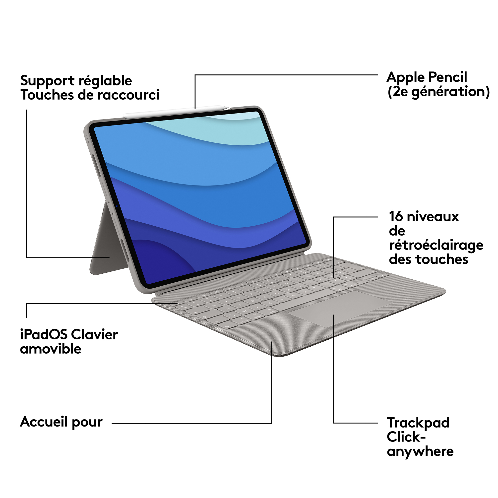Logitech Combo Touch for iPad Pro 12.9-inch (5th generation), QWERTY, Brits Engels, Trackpad, 1,9 cm, 1 mm, Apple