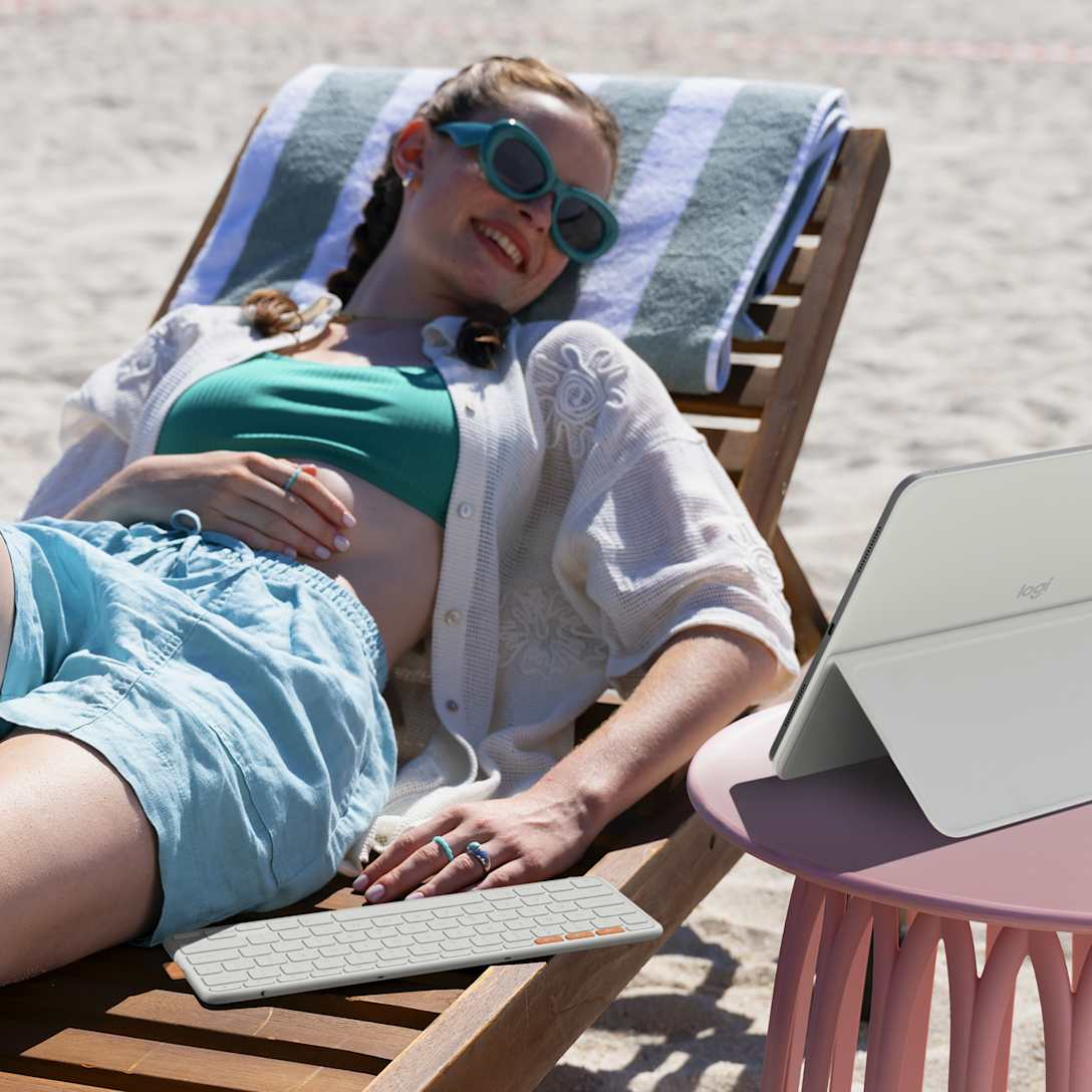 Logitech Flip Folio. Toetsenbordindeling: QWERTZ, Taal toetsenbord: Duits, Tussenafstand toetsen (vanaf het midden gemeten): 1,9 cm. Merkcompatibiliteit: Apple, Compatibiliteit: iPad Pro 13-inch (M4), iPad Air 13-inch (M2 & M3), Kleur van het product: Licht Grijs. Connectiviteitstechnologie: Draadloos, Aansluiting: Bluetooth. Stroombron: Batterij/Accu, Type batterij: CR2016, Capaciteit van de accu/batterij: 90 mAh. Breedte: 111 mm, Diepte: 7 mm, Hoogte: 288 mm