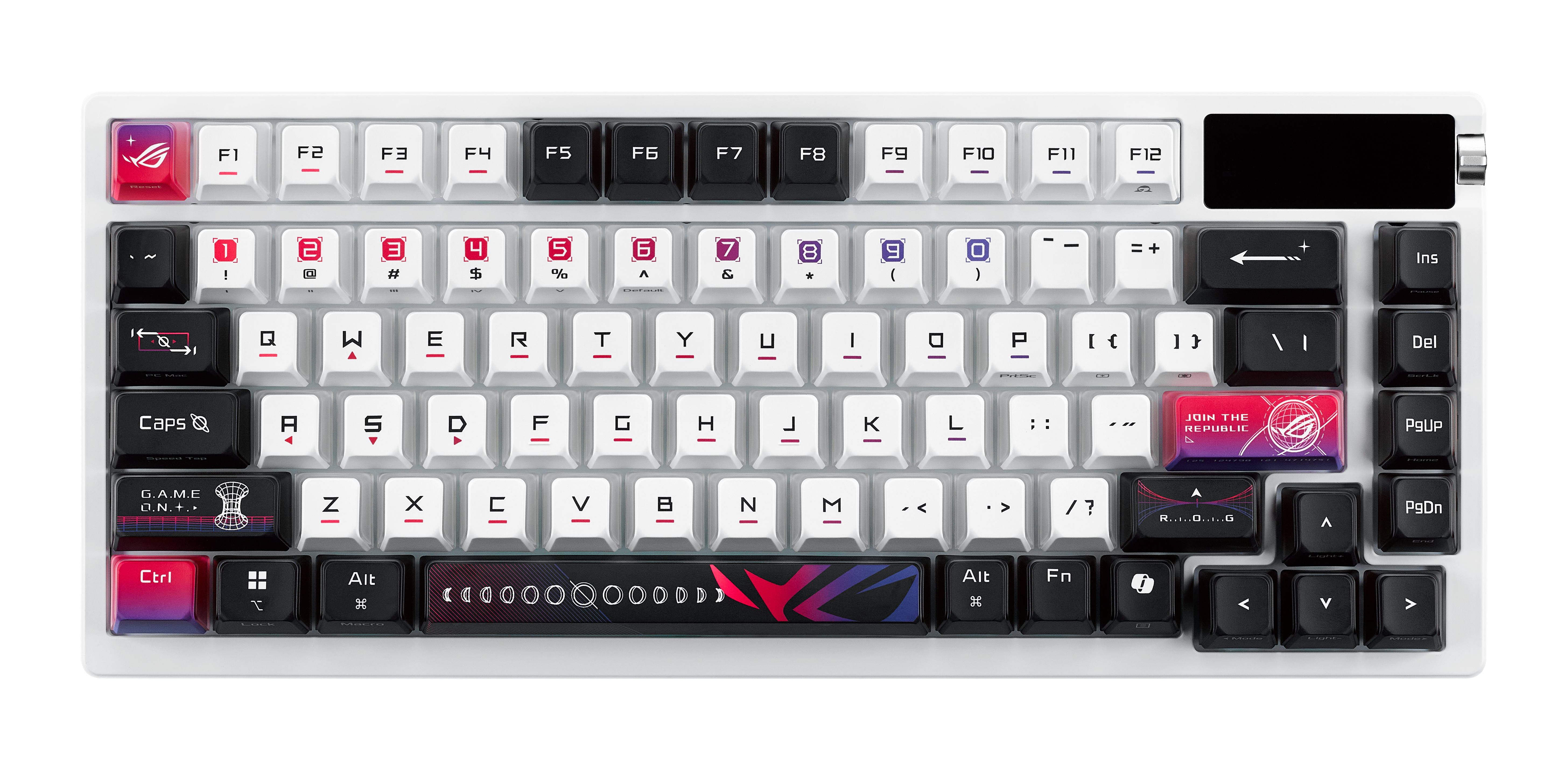 ASUS ROG Azoth X, 75%, Bedraad en draadloos, USB + RF Wireless + Bluetooth, Mechanische keyswitch, RGB LED, Zwart, Wit
