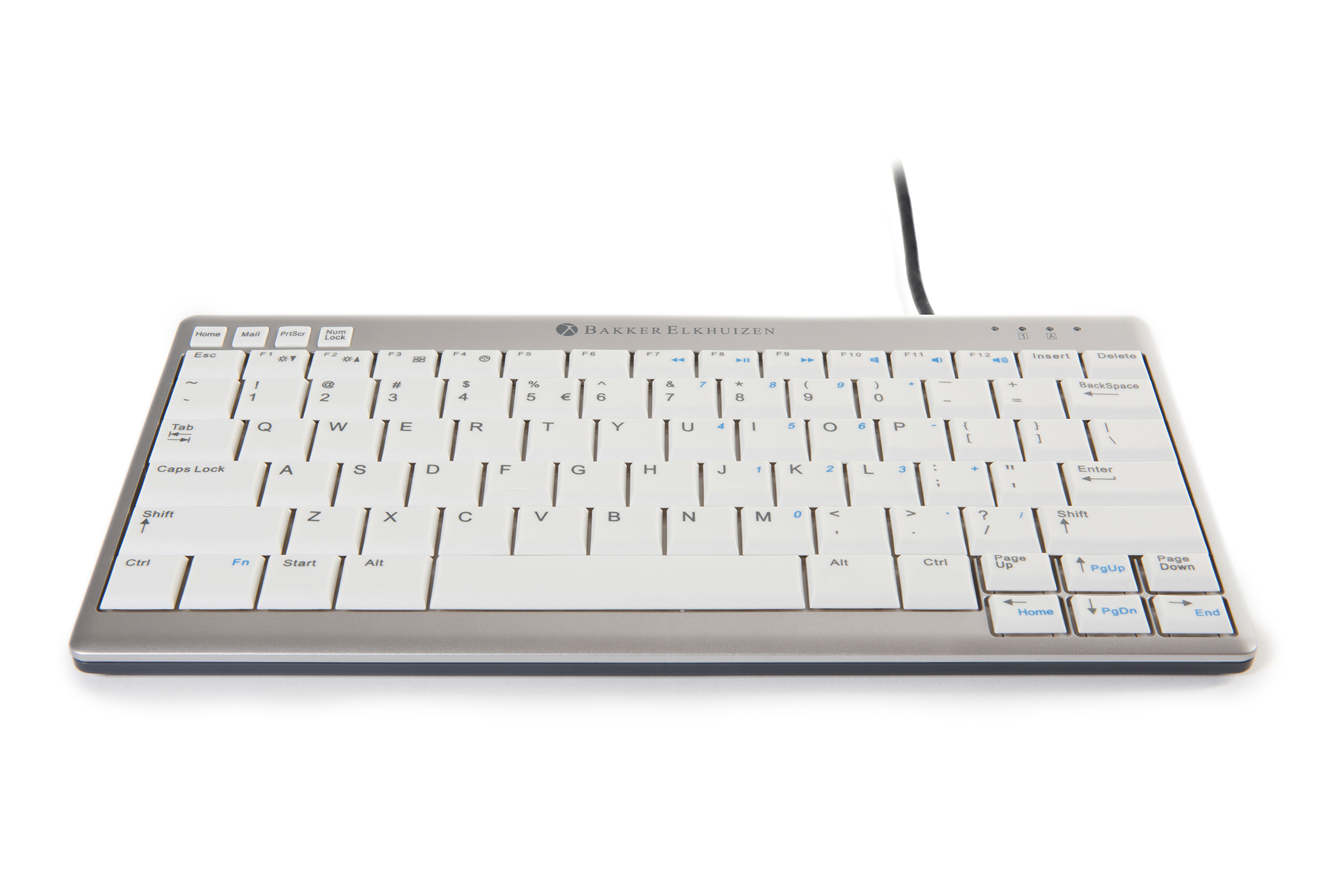 BakkerElkhuizen UltraBoard 950, Mini, Bedraad, USB, Schaar-toetsschakelaar, AZERTY, Licht Grijs, Wit