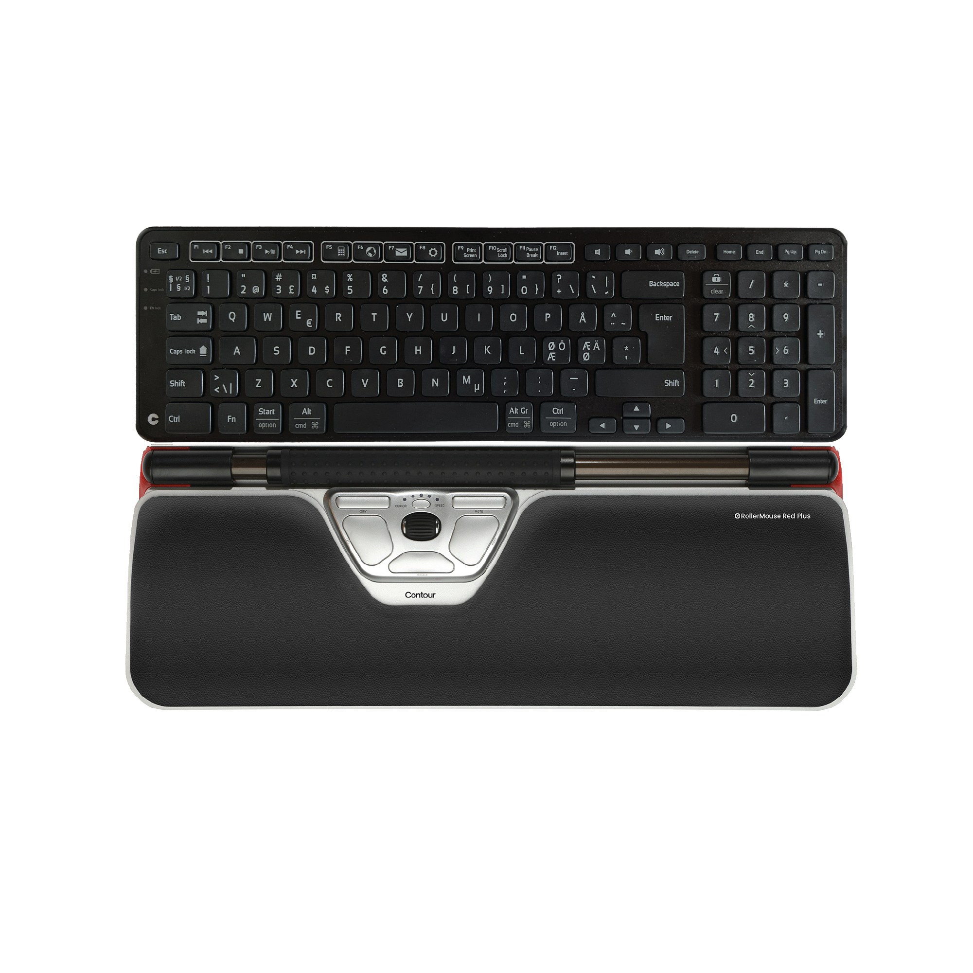 Contour Design RollerMouse Red Plus + Balance Keyboard PN, Draadloos, Volledige grootte (100%), Bedraad en draadloos, USB + Bluetooth, QWERTY, Zwart, Inclusief muis