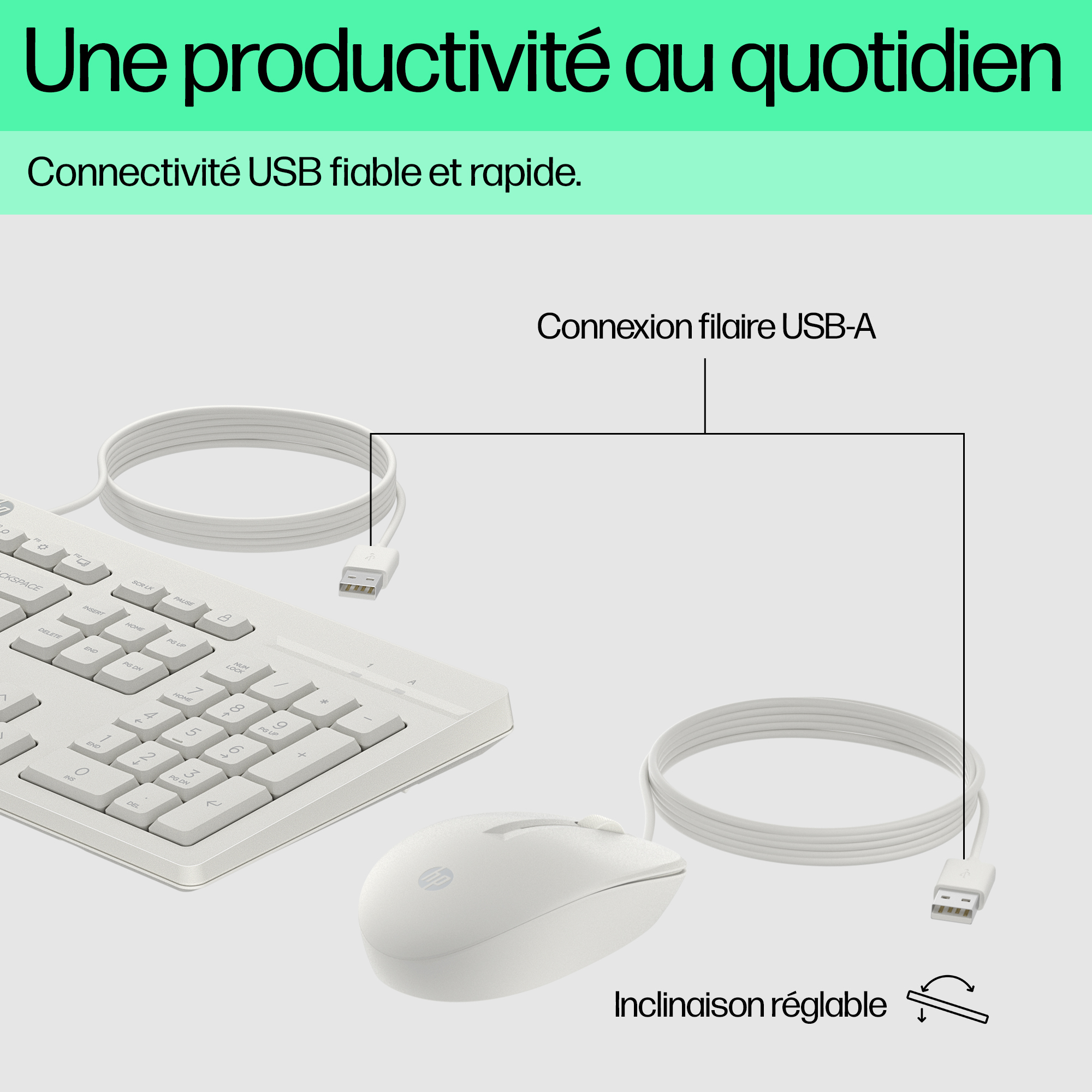 HP 225 muis en toetsenbord met kabel, Volledige grootte (100%), Bedraad, USB, Membraan keyswitch, Zwart, Inclusief muis