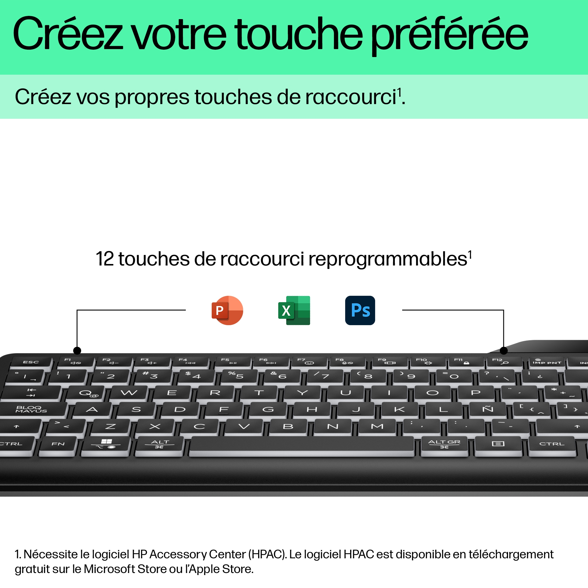 HP 400 backlit toetsenbord met kabel, Volledige grootte (100%), Bedraad, USB, AZERTY, Zwart