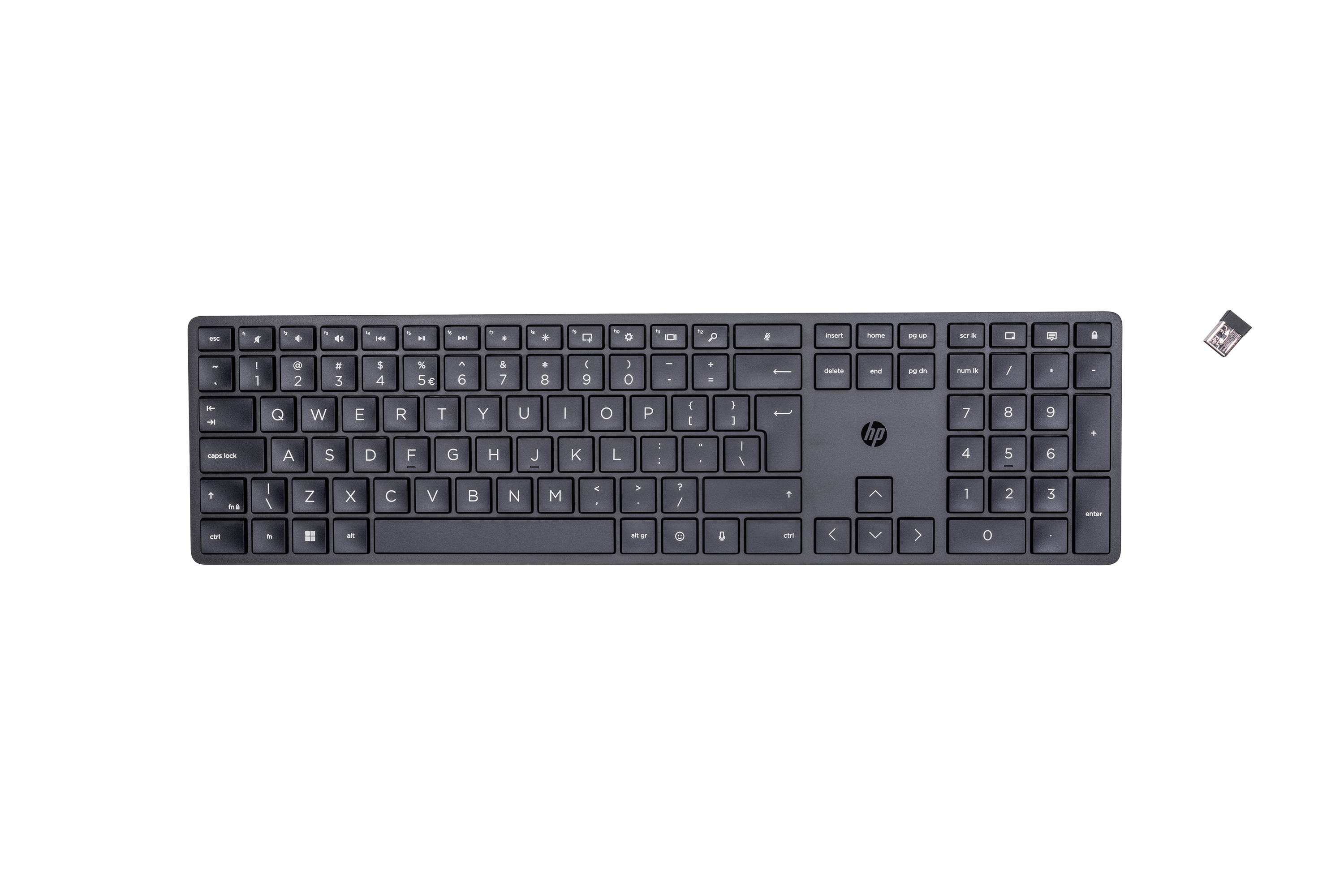 HP 450 programmeerbaar draadloos toetsenbord, Volledige grootte (100%), Bedraad en draadloos, RF draadloos + USB, Mechanische keyswitch, QWERTY, Zwart