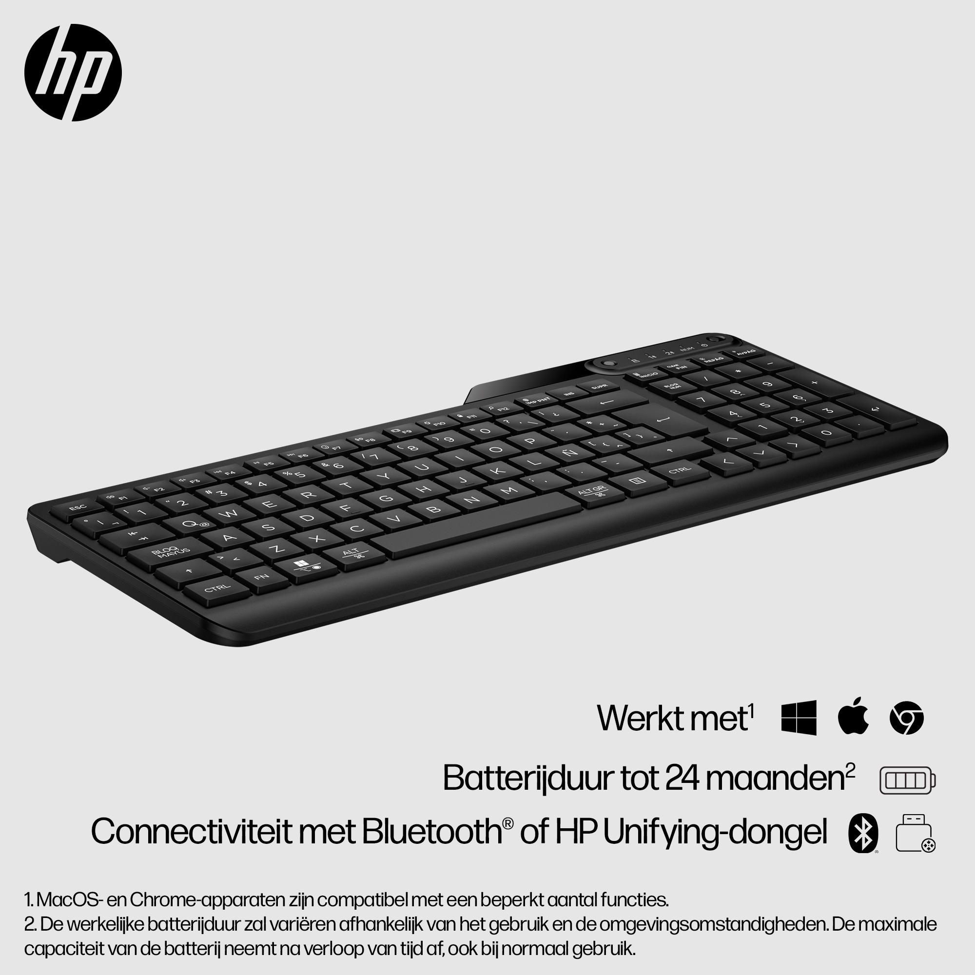HP 475 DUAL-MODE WL KBD, Volledige grootte (100%), Draadloos, RF-draadloos + Bluetooth, Membraan keyswitch, Zwart