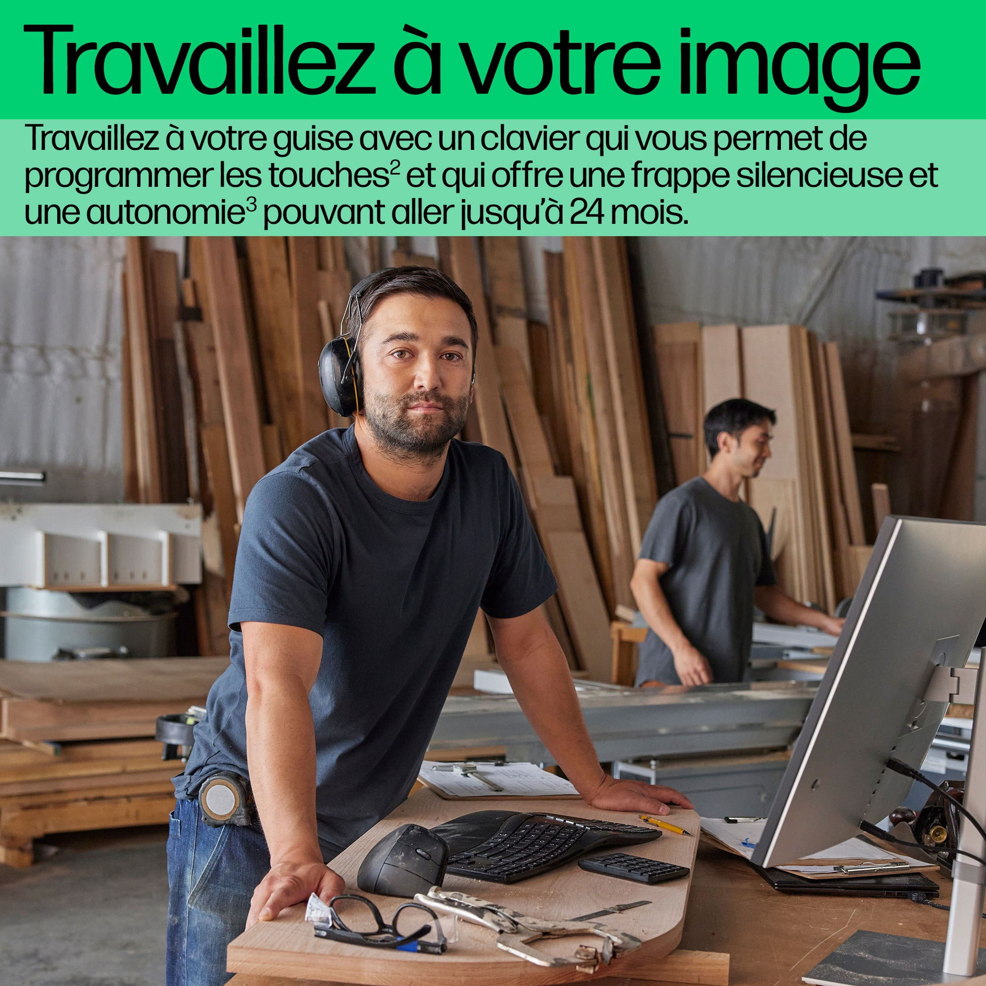 Met dit wetenschappelijk ontworpen ergonomische draadloze toetsenbord van HP creëer je jouw perfecte werkplek. De lay-out met gesplitste zones past zich aan jou aan en door de twintig programmeerbare toetsen[1] en het aparte numerieke toetsenblok kun je alles naar wens aanpassen. Je kunt op twee manieren verbinding maken met apparaten en beschikt dus altijd over de juiste tools voor elke taak.
