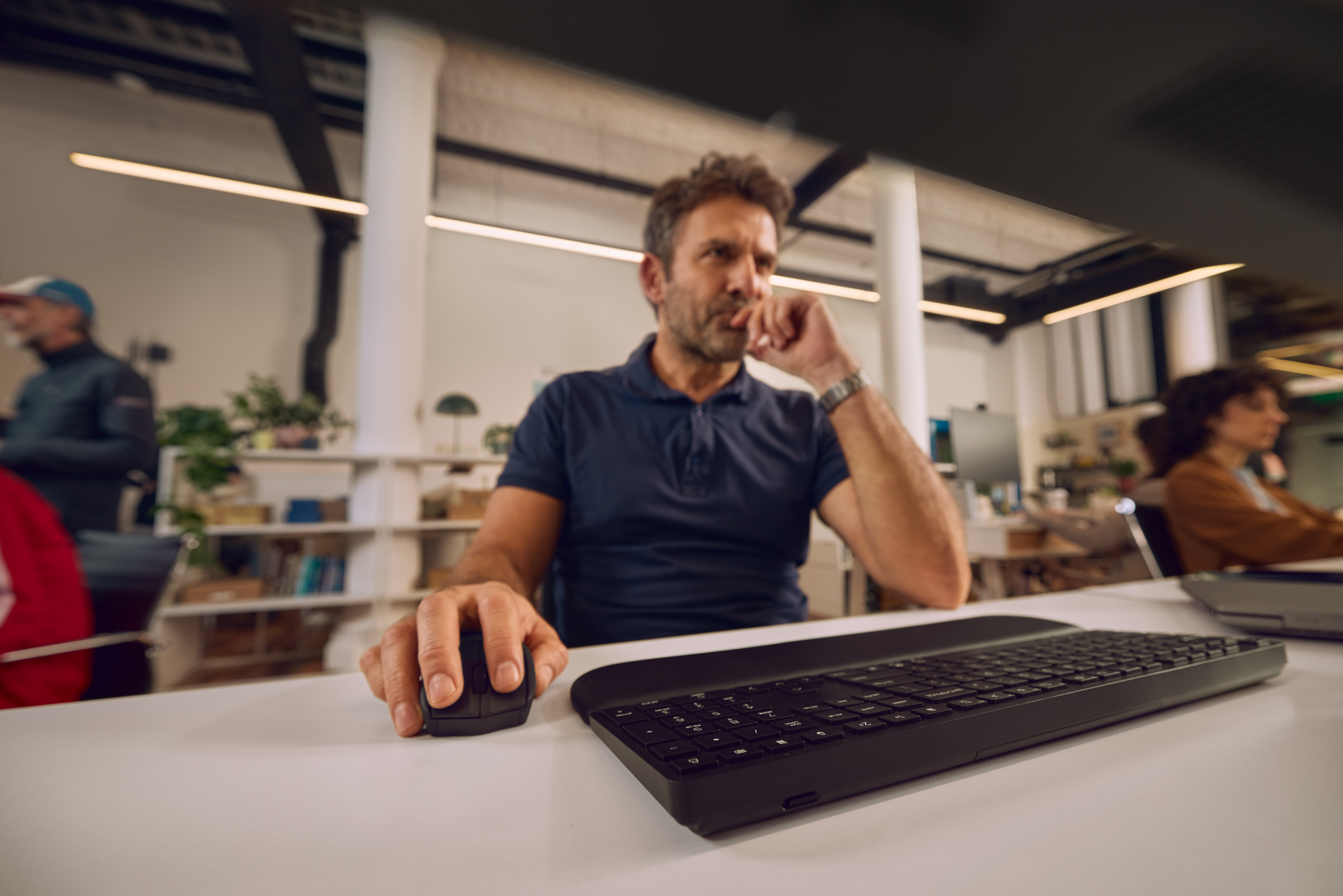Werk overal op je best. Ervaar ultiem comfort met de magnetische polssteun op het toetsenbord en de ergonomisch gevormde muisgrepen. Verhoog je productiviteit met programmeerbare sneltoetsen[1] en naadloze, veilige verbindingen met al je apparaten.