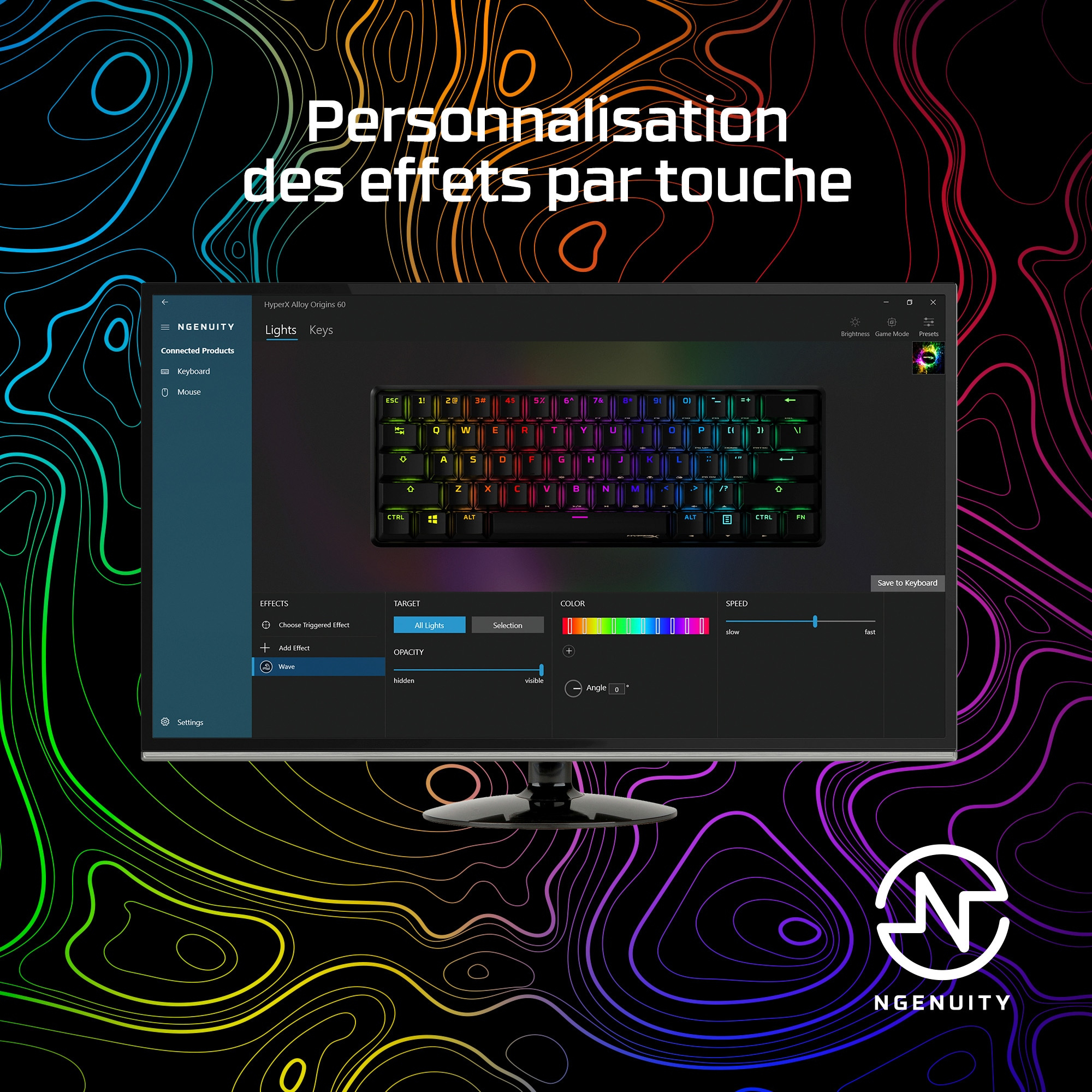 De HyperX Alloy Origins™ 60 is een uiterst draagbaar toetsenbord met 60% vormfactor dat je meer ruimte geeft voor vegende muisbewegingen. Hij heeft een duurzame, volledig aluminium behuizing, en betrouwbare HyperX-switches, uitgebalanceerd voor snelheid en prestaties, die naar schatting 80 miljoen toetsaanslagen kunnen weerstaan. Op de standaard "double shot" PBT-toetsen zijn secundaire functies gedrukt, zodat je snel extra functies kunt vinden. Kies voor een strakke uitstraling met de HyperX-switches met hun zichtbare led-ontwerp, en verbluffende lichteffecten. Pas je toetsenbord verder aan met macro's, persoonlijke verlichtingsprofielen, en meer met de HyperX NGENUITY-software.