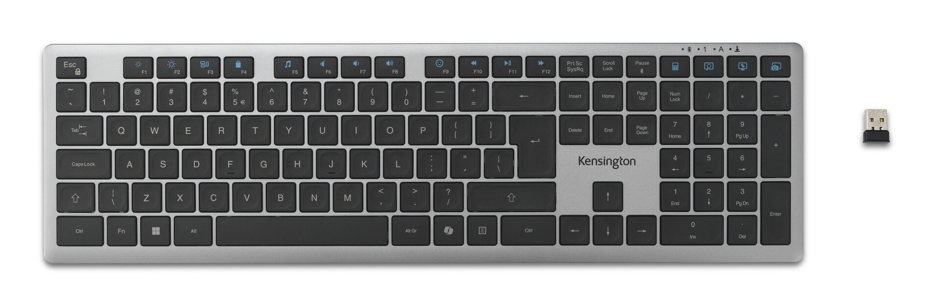 Kensington KB535 EQ Rechargeable Multi-Device Keyboard, Int ENG, Volledige grootte (100%), Draadloos, RF-draadloos + Bluetooth, Schaar-toetsschakelaar, QWERTY, Grijs