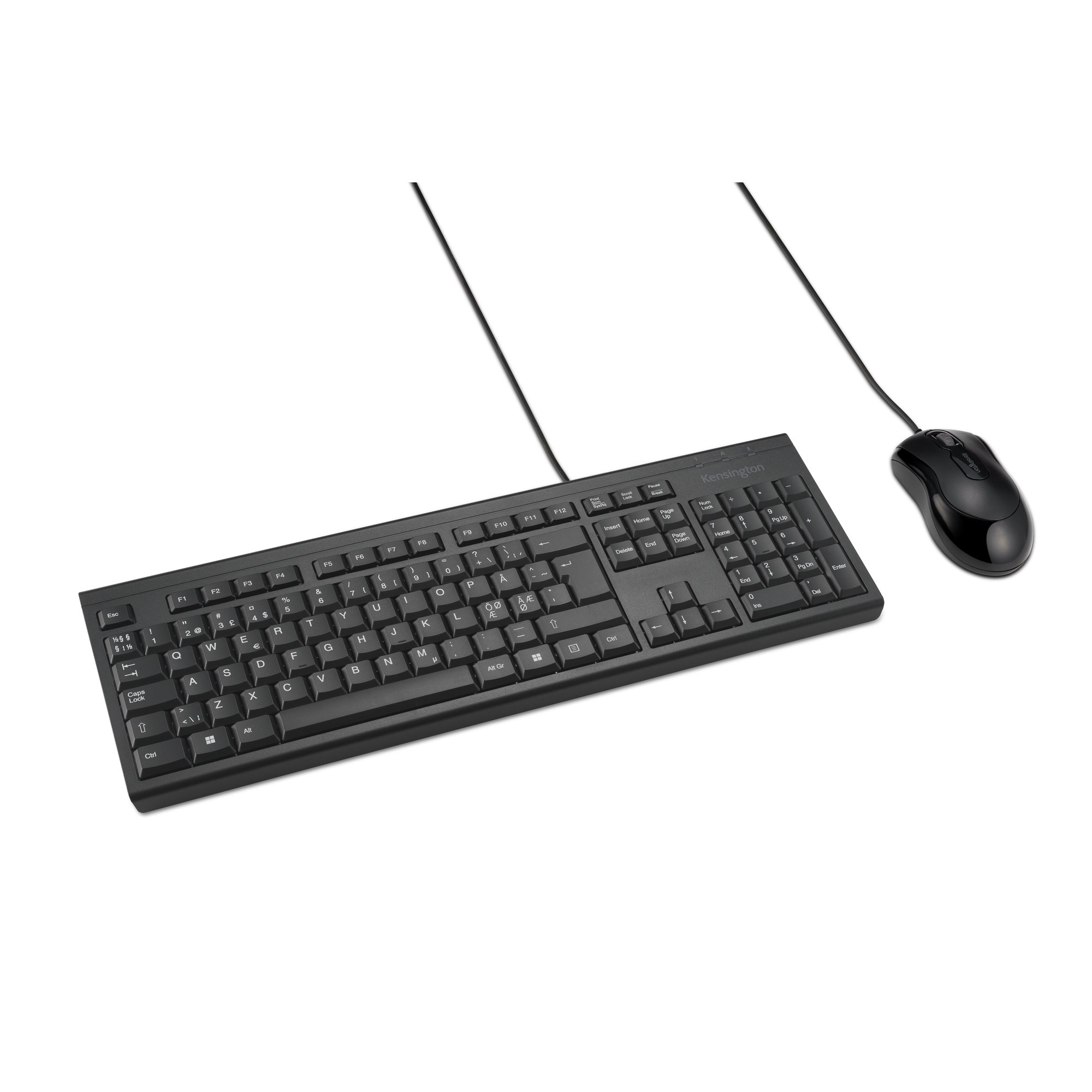 Kensington KM100 EQ Wired Desktop Set, Bedraad, USB, Membraan keyswitch, QWERTY, Zwart, Inclusief muis