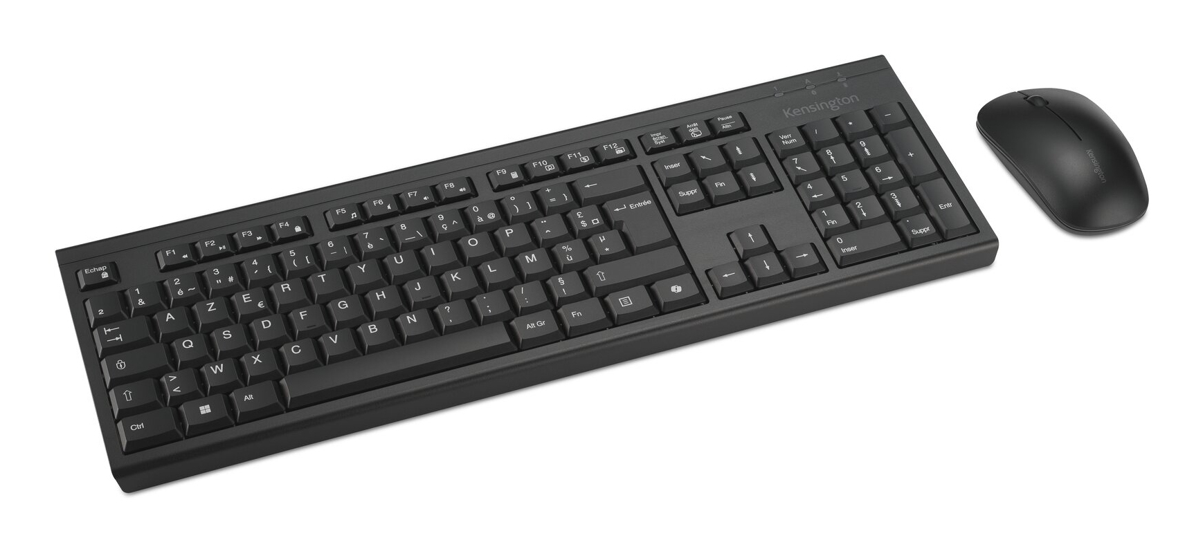 Kensington KM270 EQ Rechargeable Desktop Set – Wireless, Draadloos, RF-draadloos + Bluetooth, Membraan keyswitch, AZERTY, Zwart, Inclusief muis