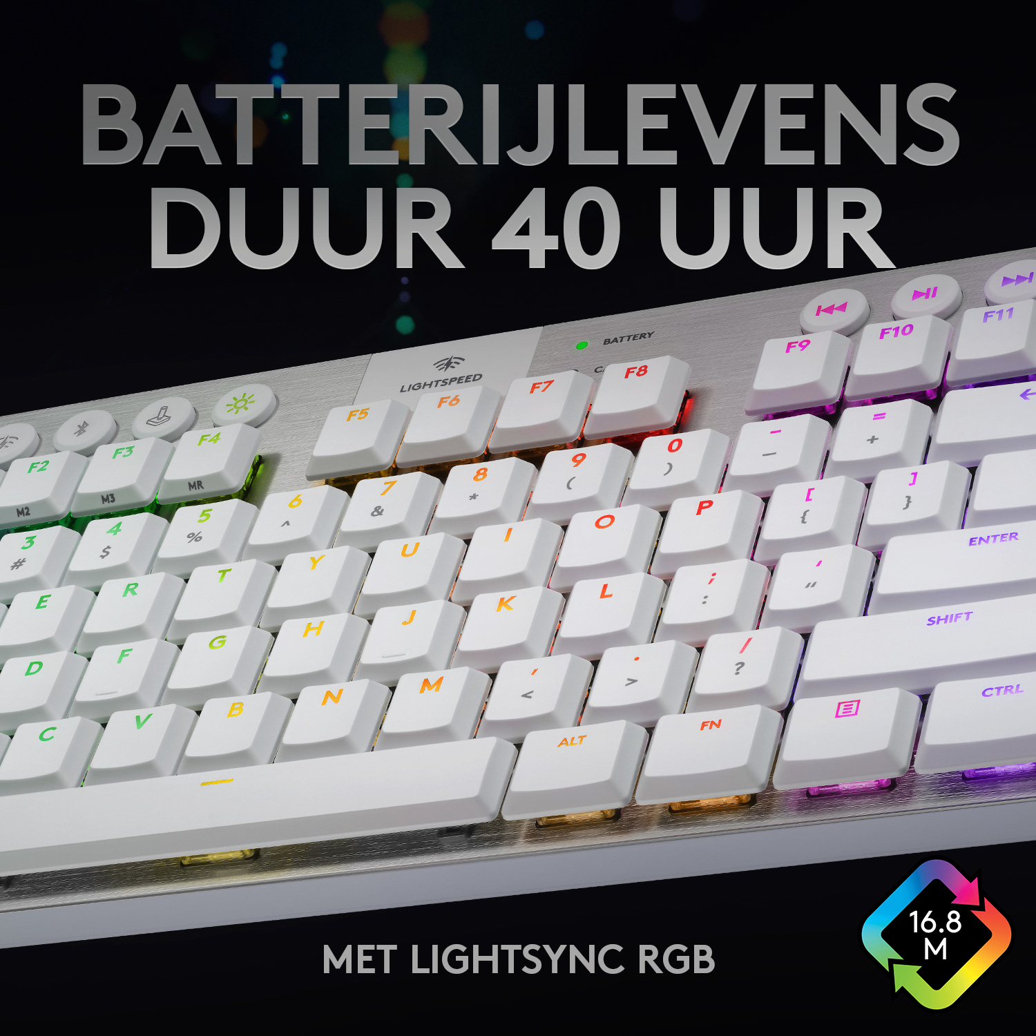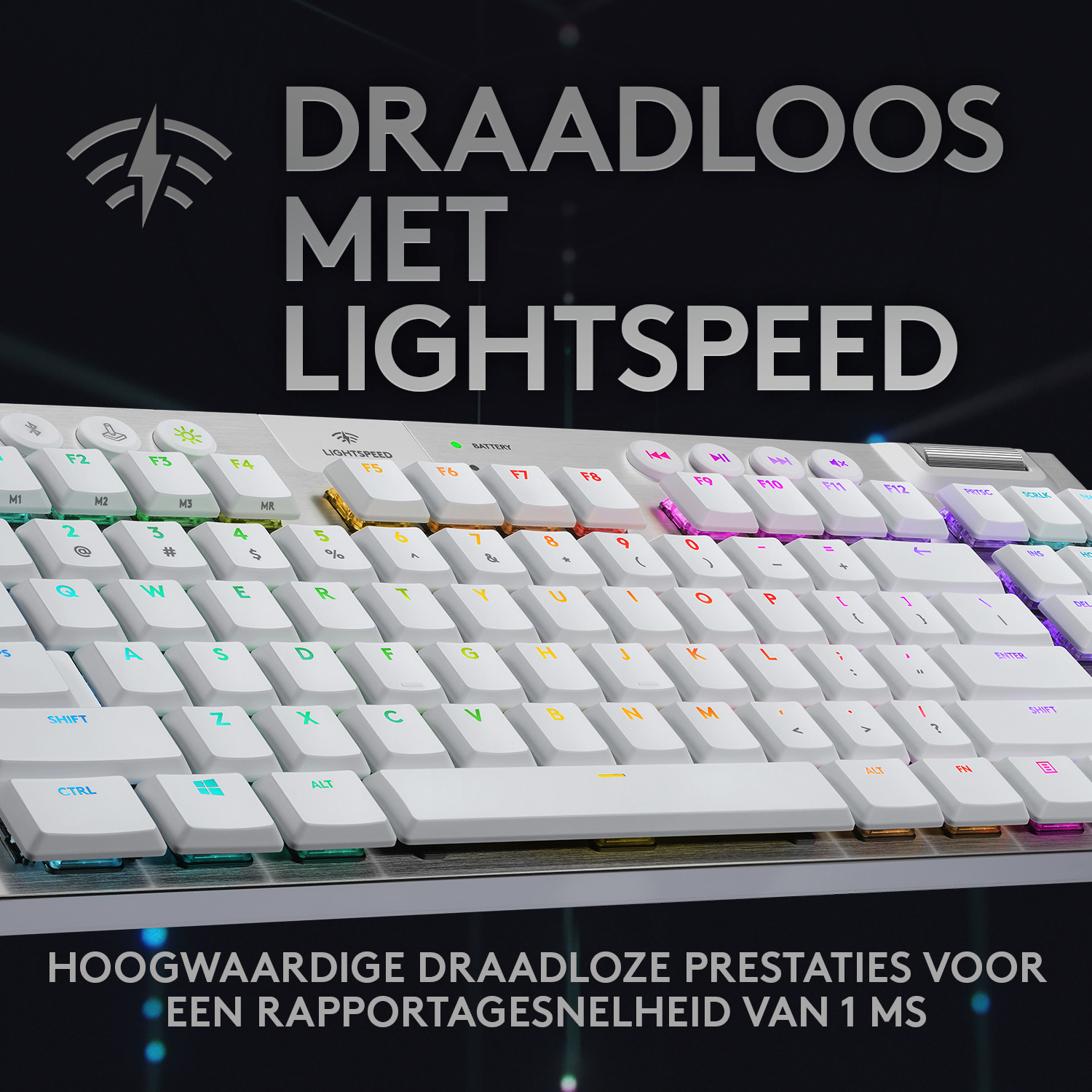 Logitech G G915 TKL, Draadloos, RF-draadloos + Bluetooth, Mechanische keyswitch, QWERTY, RGB LED, Wit