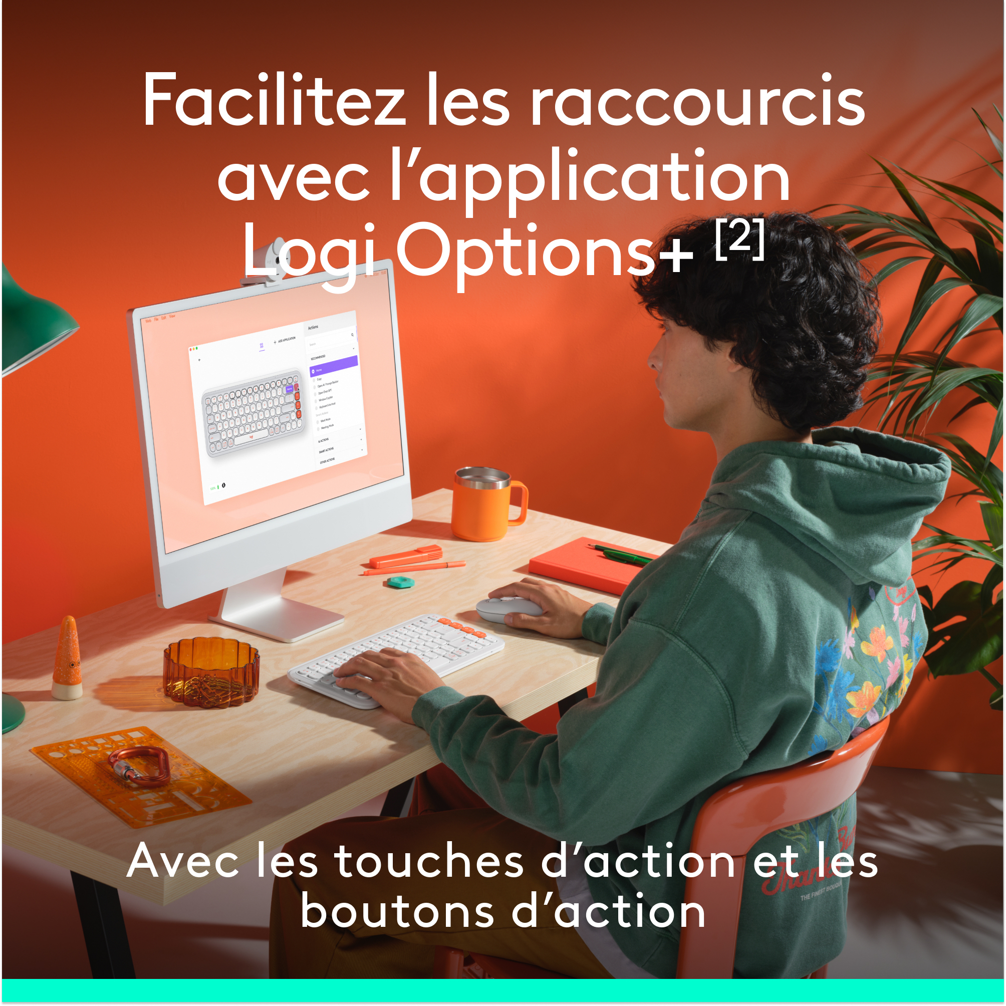 Schakel naadloos over van de 'werkmodus' naar de 'pauzemodus' met de aanpasbare Action Keys en de Logi Options+ -app. Krijg toegang tot uw reeks productiviteitstools, open uw favoriete sociale media of start uw meest gebruikte AI-tools met één druk op de knop.