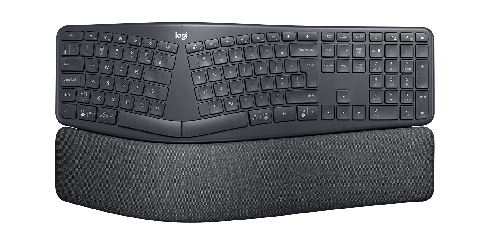 Logitech ERGO K860, Volledige grootte (100%), Draadloos, Bluetooth, Semi-mechanische sleutelschakelaar, QWERTY, Grafiet