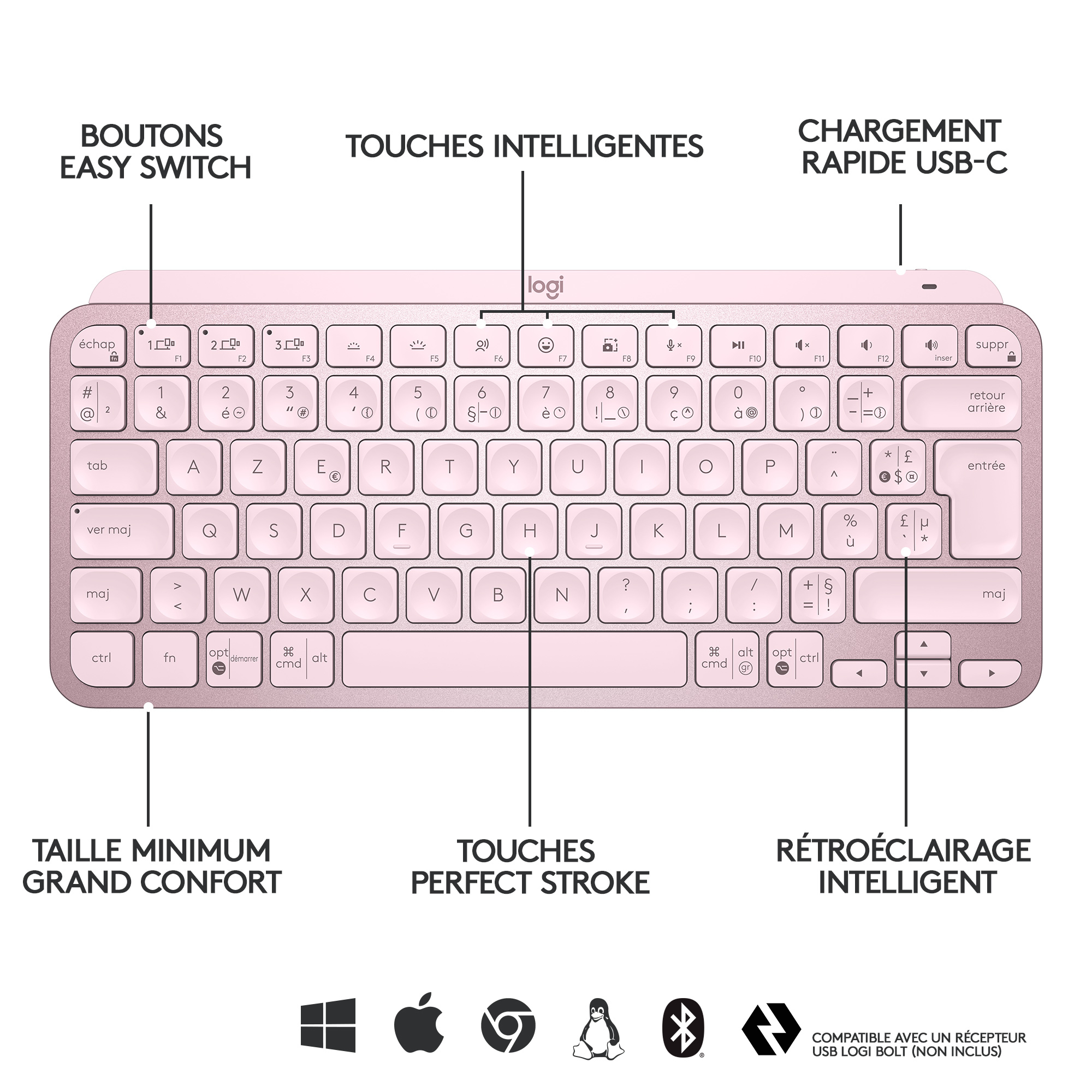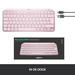 Logitech MX Keys Mini, Mini, Draadloos, RF-draadloos + Bluetooth, QWERTZ, LED, Roze