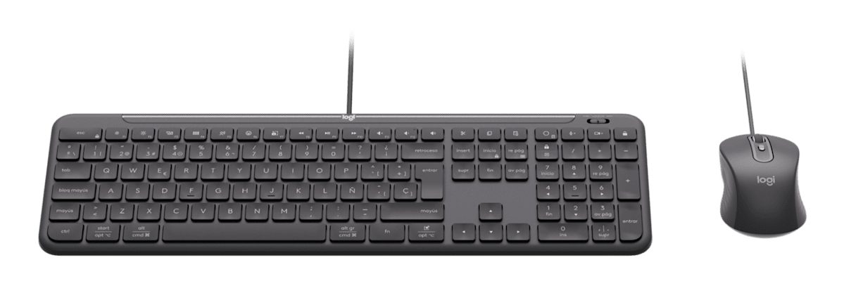 Logitech 920-013343. Toetsenbord formaat: Volledige grootte (100%), Connectiviteitstechnologie: Bedraad, Aansluiting: USB, Toetsenbord toetsschakelaar: Schaar-toetsschakelaar, Toetsenbordindeling: QWERTZ. Snoerlengte: 1,8 m. Aanbevolen gebruik: Thuis/Werk. Kleur van het product: Grafiet. Inclusief muis