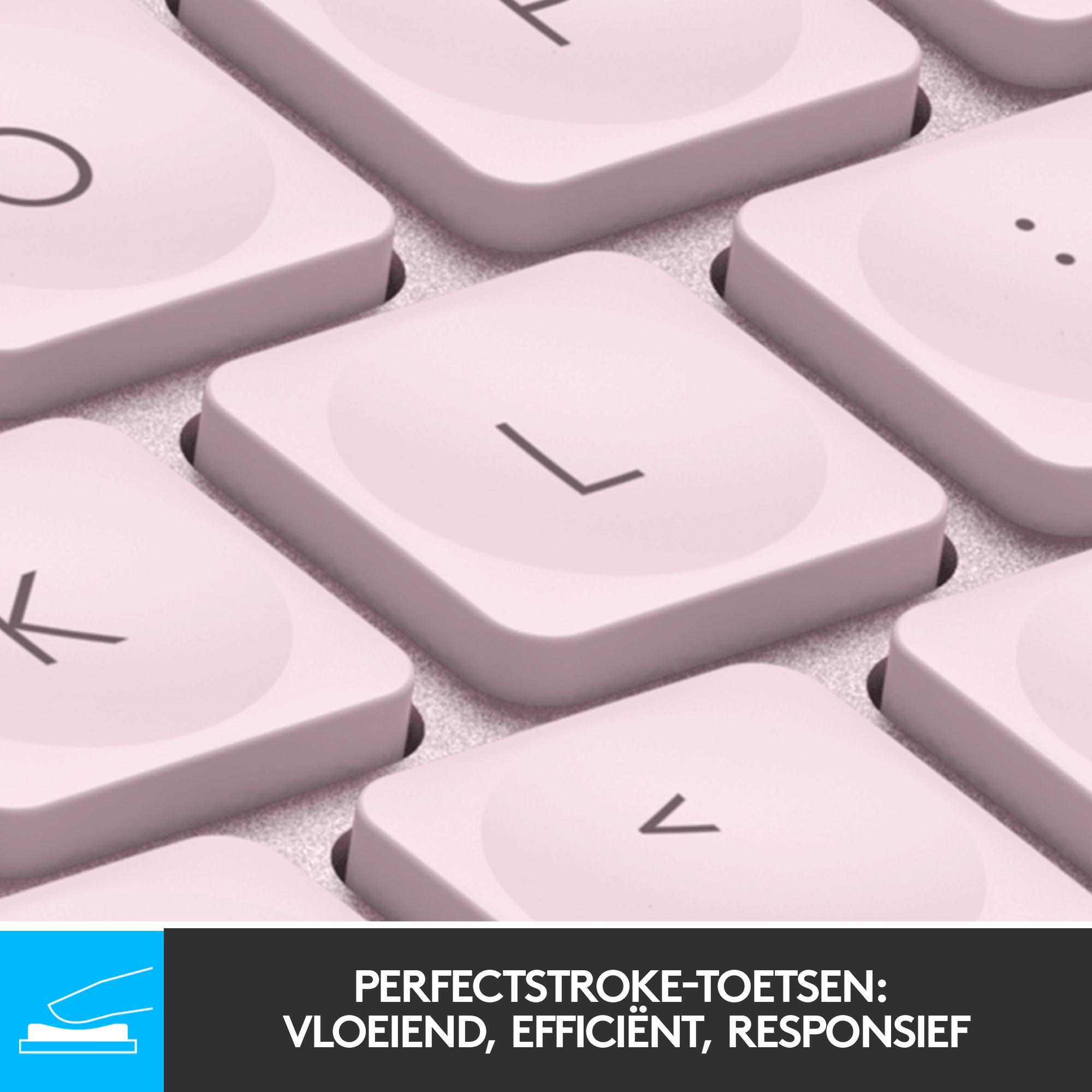 De minimalistische vorm zorgt voor betere ergonomie door je schouders op één lijn te brengen en je de mogelijkheid te geven de muis dichter bij het toetsenbord te plaatsen. Dit betekent dat je je arm minder hoeft te strekken, comfortabeler kunt werken en een betere houding aanneemt. PerfectStroke-toetsen zijn naar je vingertoppen gevormd, met optimale toetsstabiliteit en voelbare reacties, zodat je geconcentreerd en in de flow blijft.