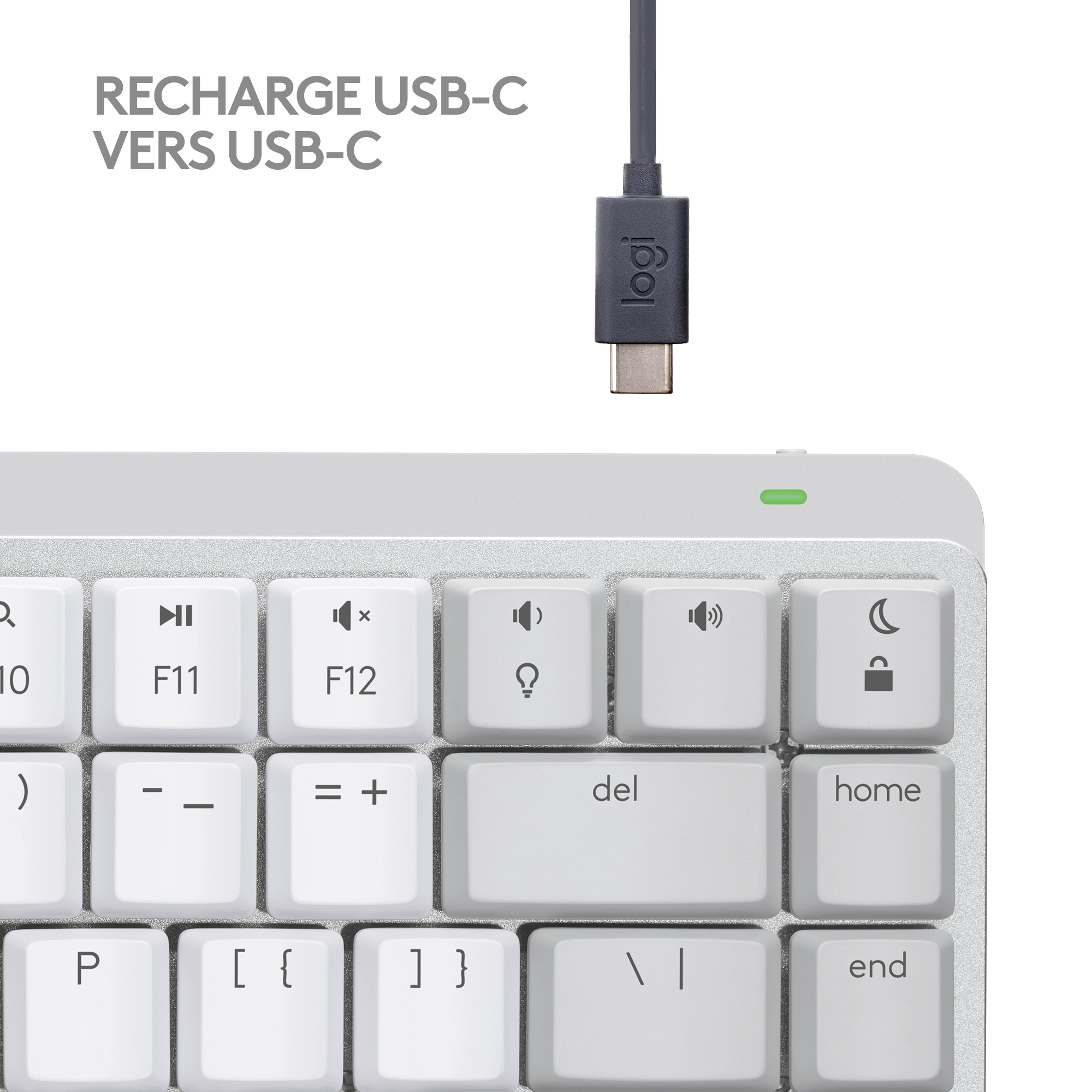 Logitech MX Mechanical Mini for Mac, Draadloos, RF-draadloos + Bluetooth, Mechanische keyswitch, QWERTZ, LED, Grijs