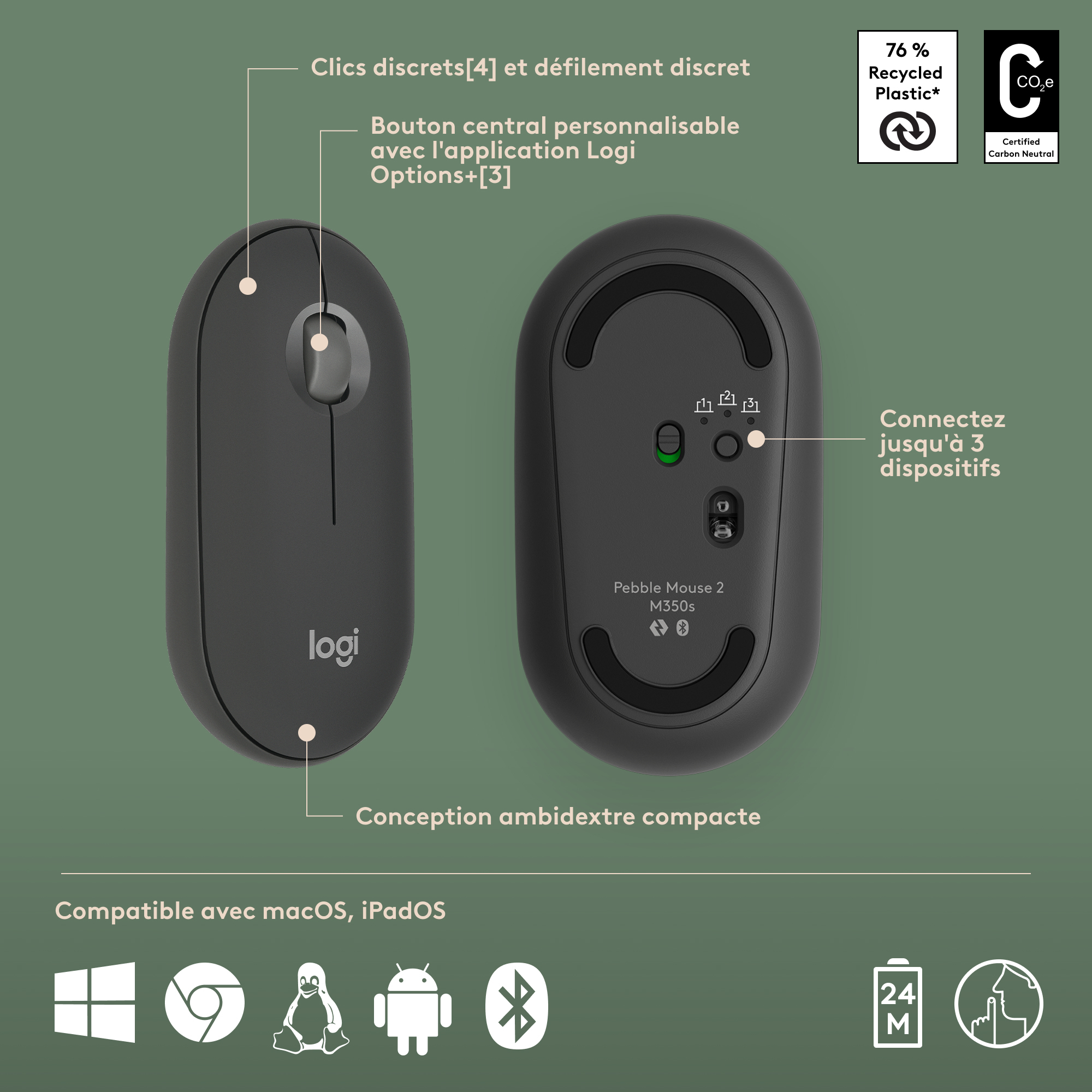 Focus op je werk en niet op je typen en klikken. De Pebble Mouse 2 M350s vermindert het klikgeluid met 90% met Silent Touch-technologie. Typ stil op de vlakke toetsen van het toetsenbord zoals op een laptop.