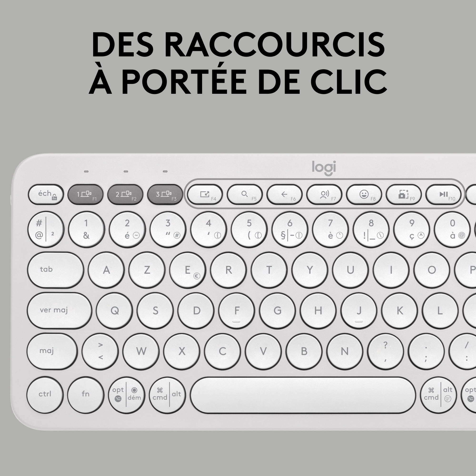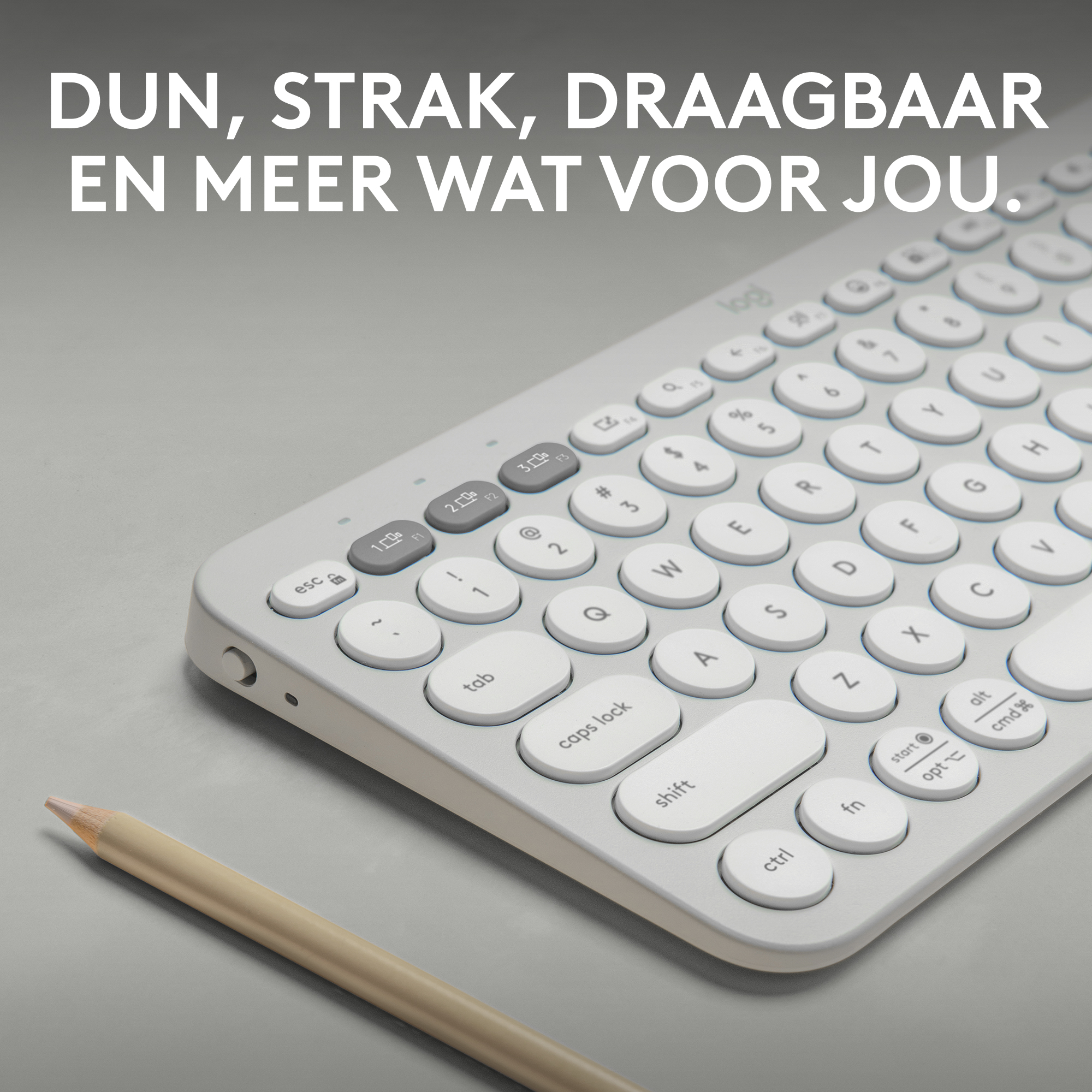 Logitech Pebble Keys 2 K380s, Mini, Draadloos, Bluetooth, Schaar-toetsschakelaar, AZERTY, Wit