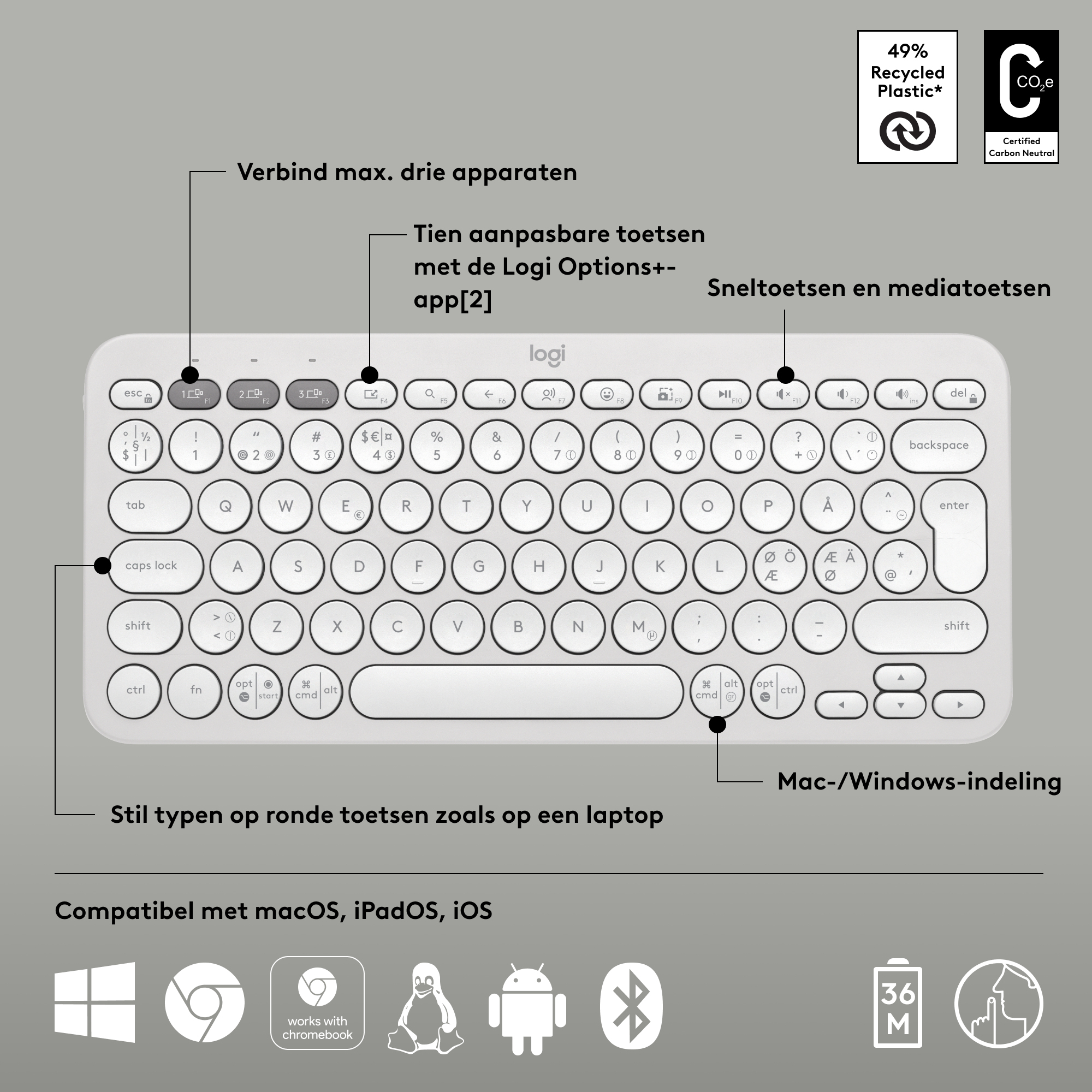WERELDWIJD: Pebble Keys 2 K380s Bluetooth-toetsenbord voor meerdere apparaten | ALLEEN CHINA: Pebble Keys 2 K390 Draadloos Toetsenbord voor meerdere apparaten