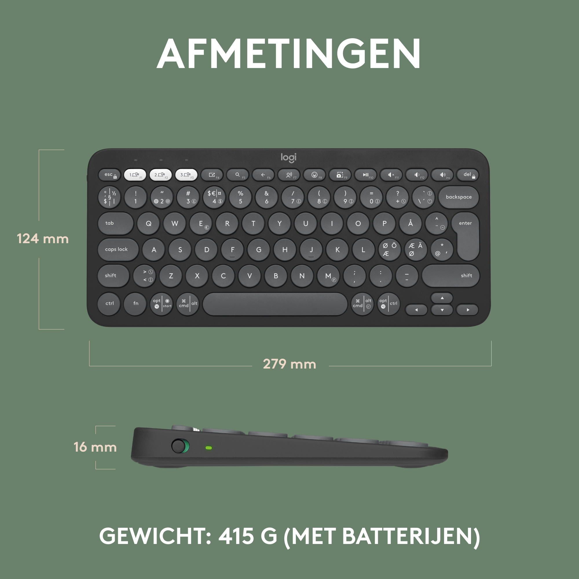 Logitech Pebble Keys 2 K380s, Mini, Draadloos, Bluetooth, Schaar-toetsschakelaar, QWERTY, Grafiet