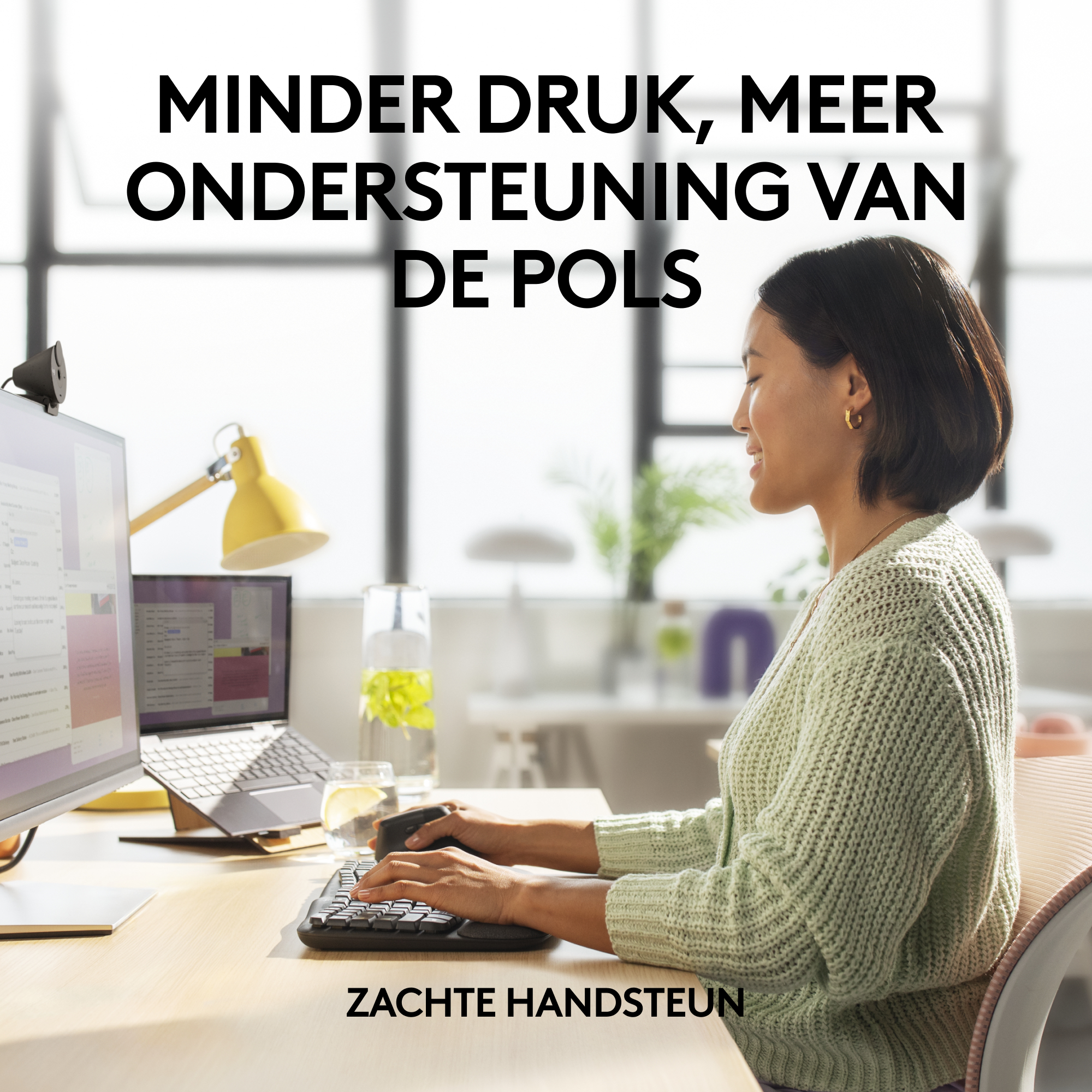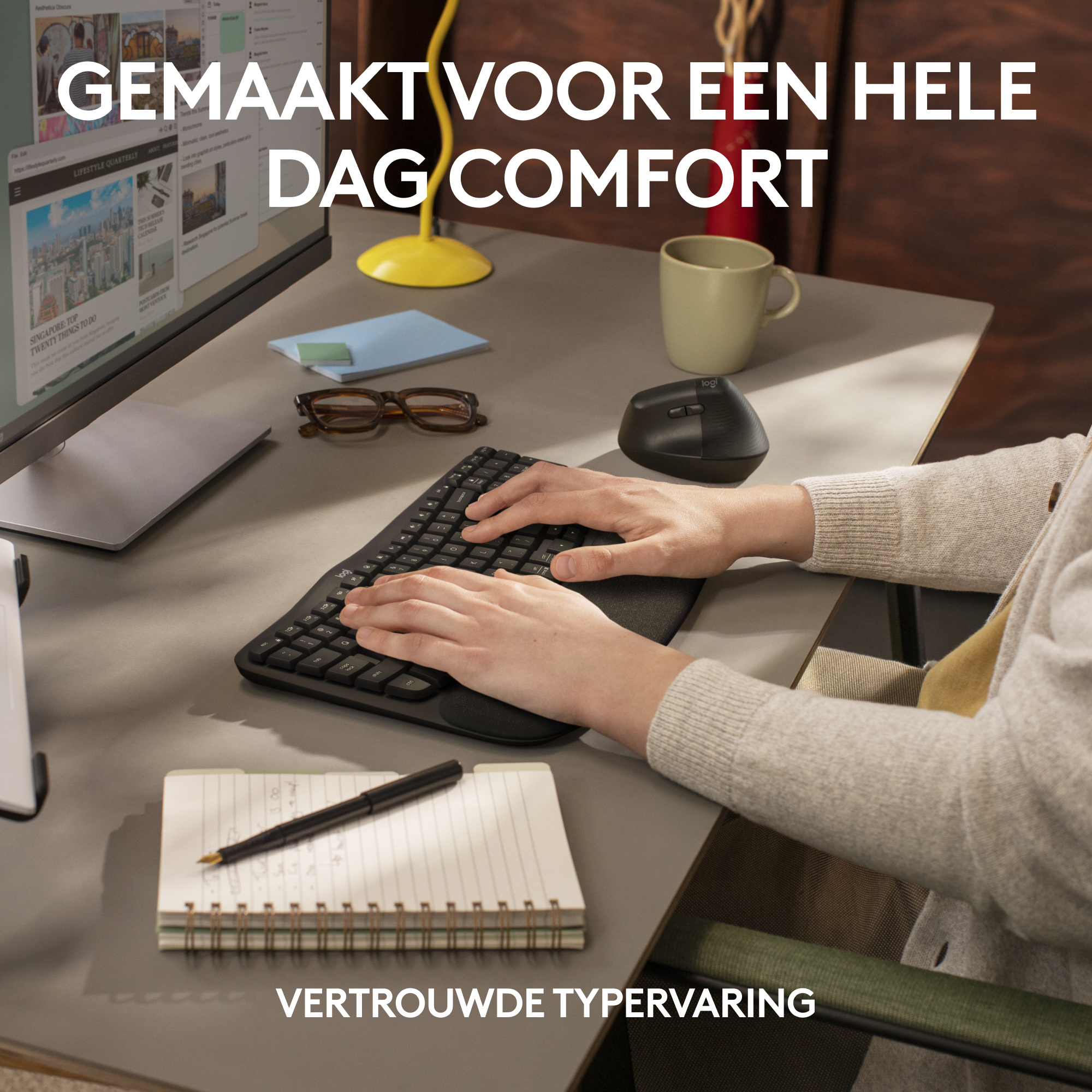 De Wave Keys for Business is ideaal voor thuis en op kantoor en beschikt over volledig versleutelde draadloze technologie voor een betrouwbare en veilige verbinding in drukke draadloze omgevingen. De indeling voor meerdere besturingssystemen werkt voor zowel Windows als macOS, waardoor hij eenvoudiger te implementeren en te beheren is. Dit toetsenbord van professionele kwaliteit is gemaakt van 61% gerecycled plastic en voldoet aan alle voorwaarden voor IT: beveiliging, wereldwijde ondersteuning, compatibiliteit en duurzaamheid. Bovendien kan de IT-afdeling het apparaat monitoren via Logitech Sync. Ontwikkeld in samenwerking met het Logi Ergo Lab. Gecertificeerd door United States Ergonomics.