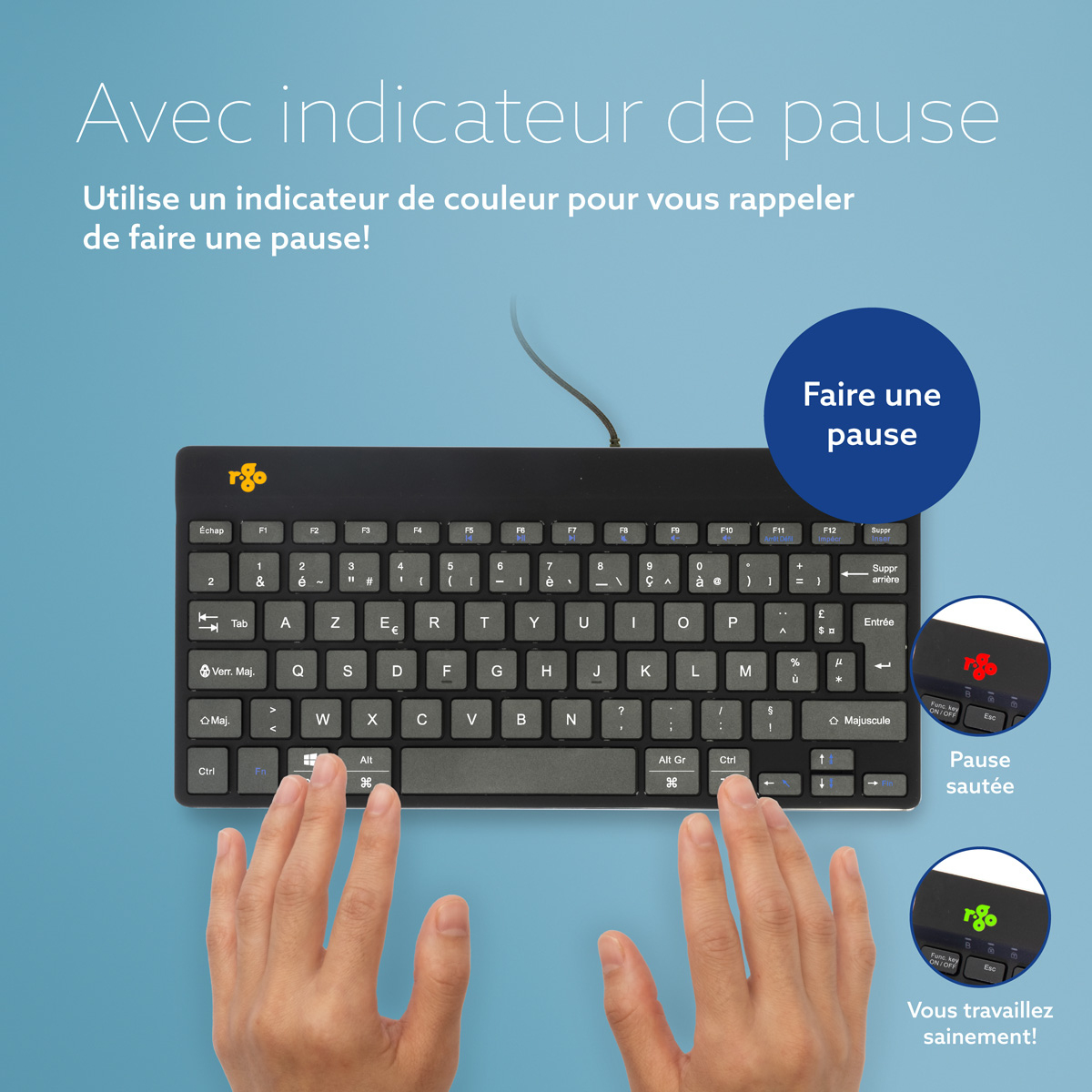 Ergonomisch toetsenbord R-Go Compact Break, compact toetsenbord met pauzesoftware, AZERTY (FR), bedraad, zwart