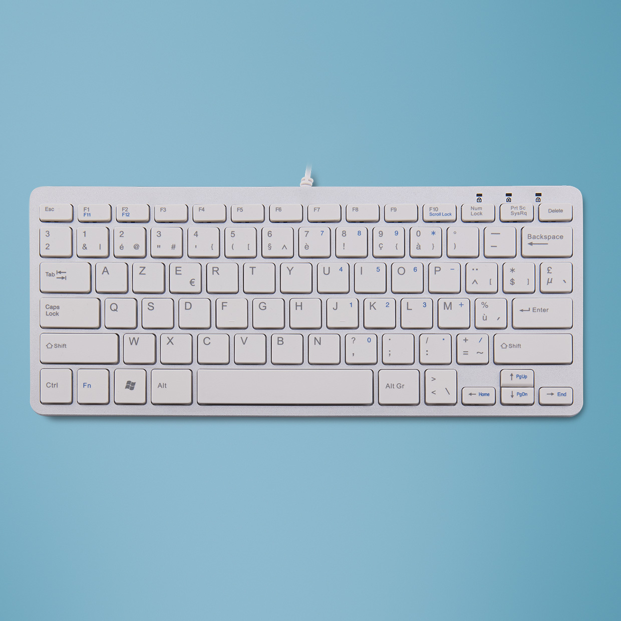 Ergonomisch toetsenbord R-Go Compact, compact toetsenbord, plat design, AZERTY (BE), bedraad, wit