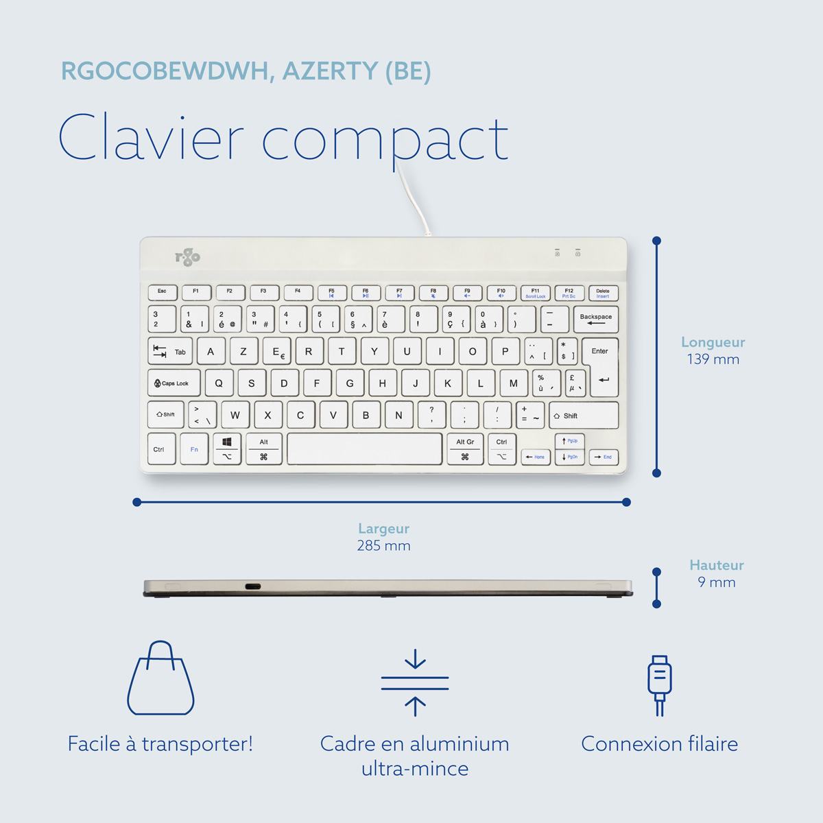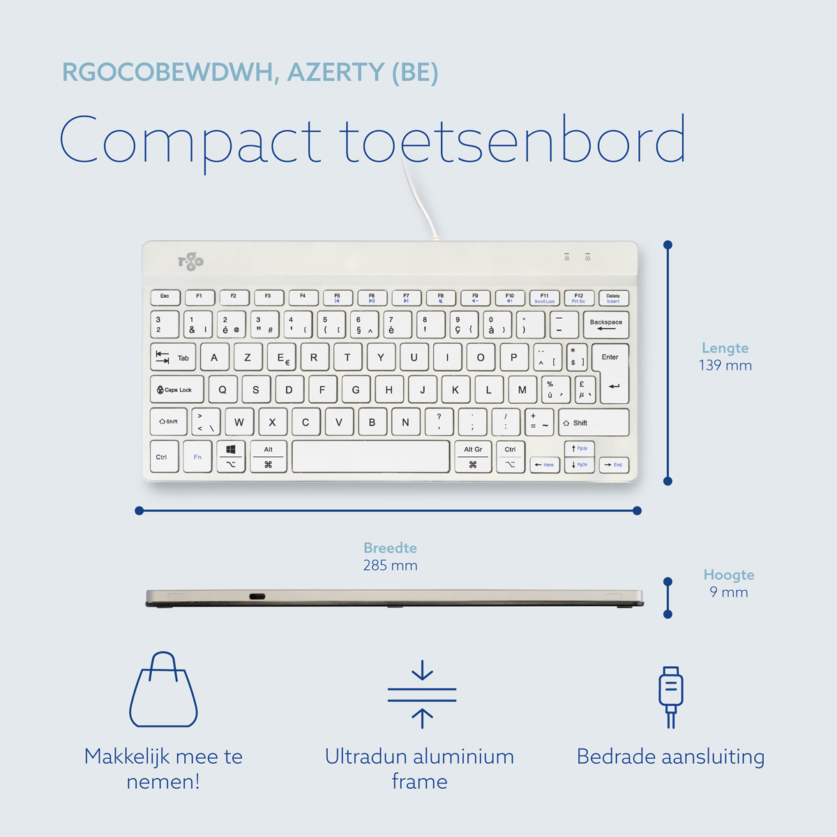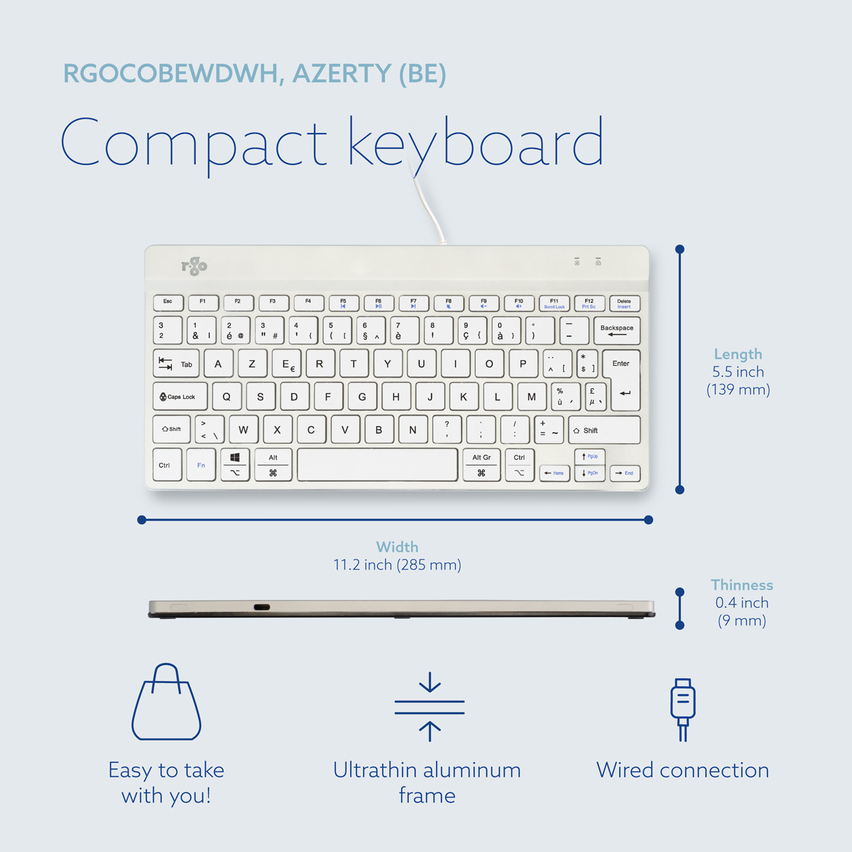 Ergonomisch toetsenbord R-Go Compact Break, compact toetsenbord met pauzesoftware, AZERTY (BE), bedraad, wit