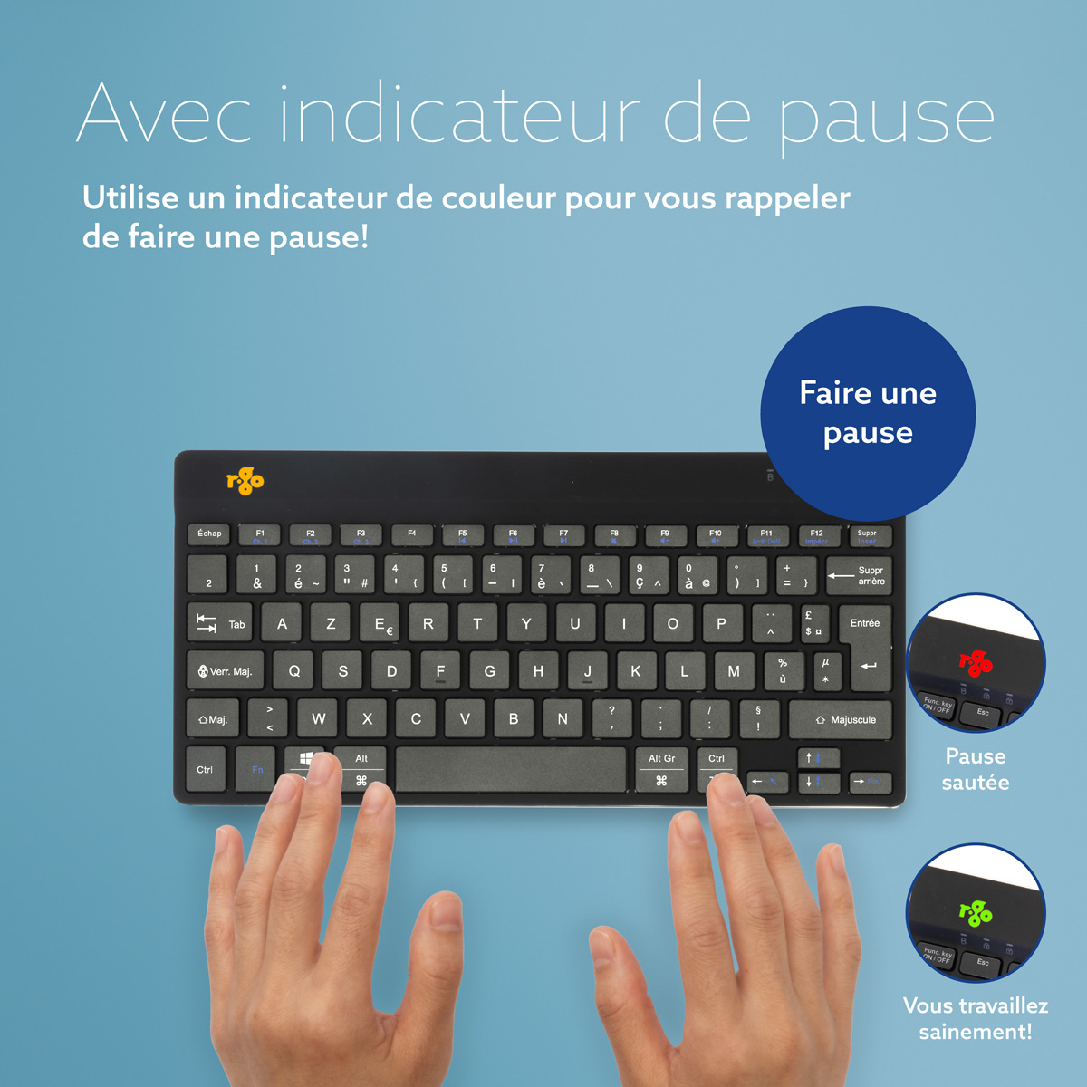 Ergonomisch toetsenbord R-Go Compact Break, compact toetsenbord met pauzesoftware, AZERTY (FR), Bluetooth, zwart