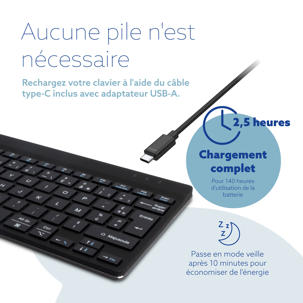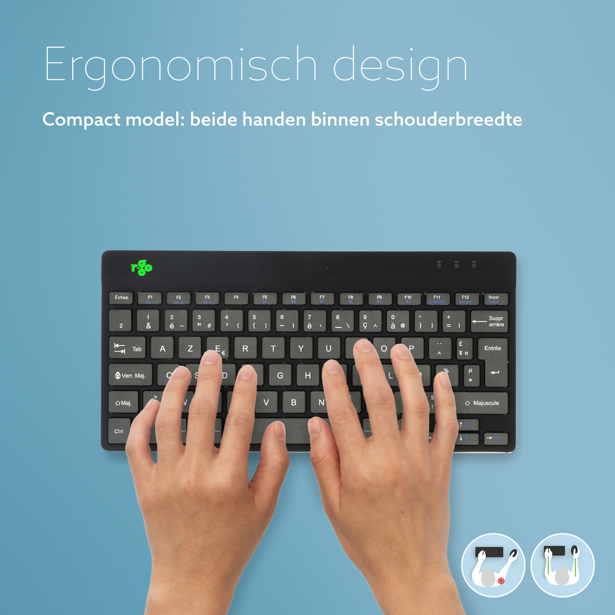 R-Go Tools Ergonomisch toetsenbord R-Go Compact Break, compact toetsenbord met pauzesoftware, AZERTY (FR), Bluetooth, zwart, Mini, Draadloos, Bluetooth, Schaar-toetsschakelaar, AZERTY, Zwart
