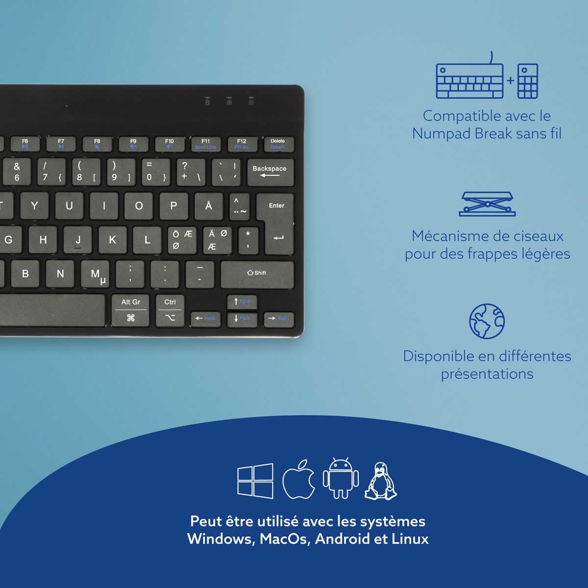 R-Go Tools Ergonomisch toetsenbord R-Go Compact Break, compact toetsenbord met pauzesoftware, QWERTY (NORDIC), Bluetooth, zwart, Mini, Draadloos, Bluetooth, Schaar-toetsschakelaar, QWERTY, Zwart