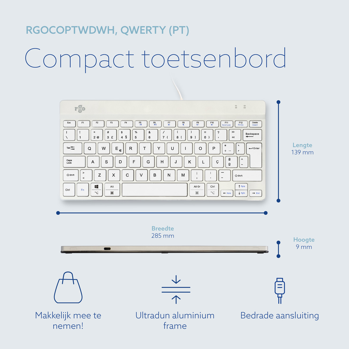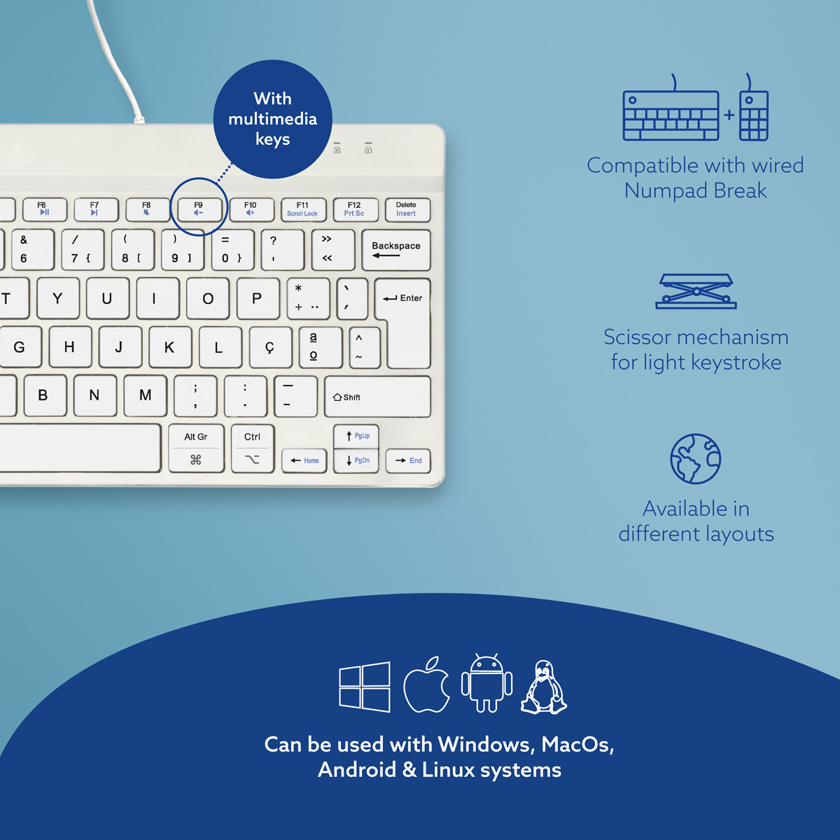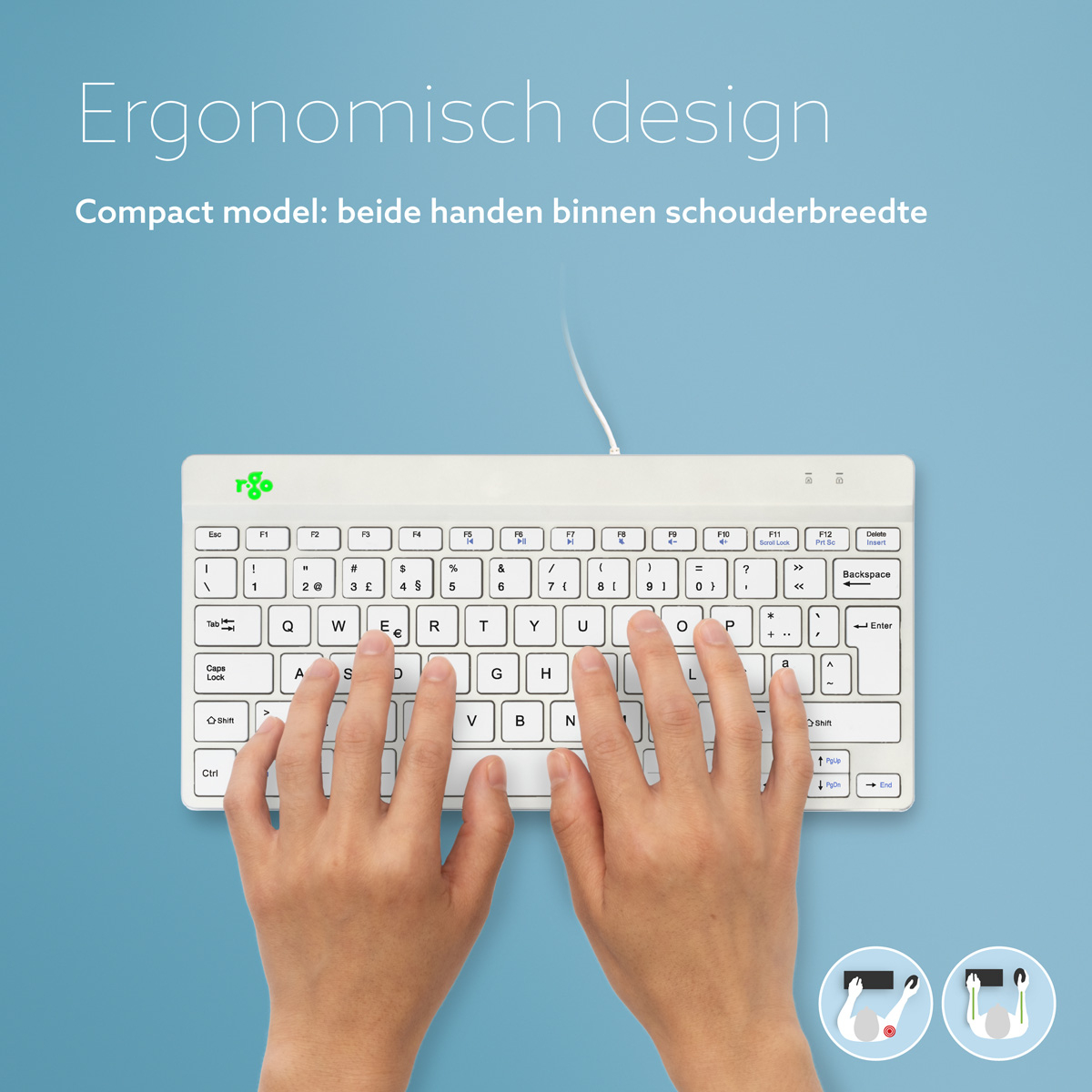 R-Go Tools Ergonomisch toetsenbord R-Go Compact Break, compact toetsenbord met pauzesoftware, QWERTY (PT), bedraad, wit, Bedraad, USB, Schaar-toetsschakelaar, QWERTY, Wit