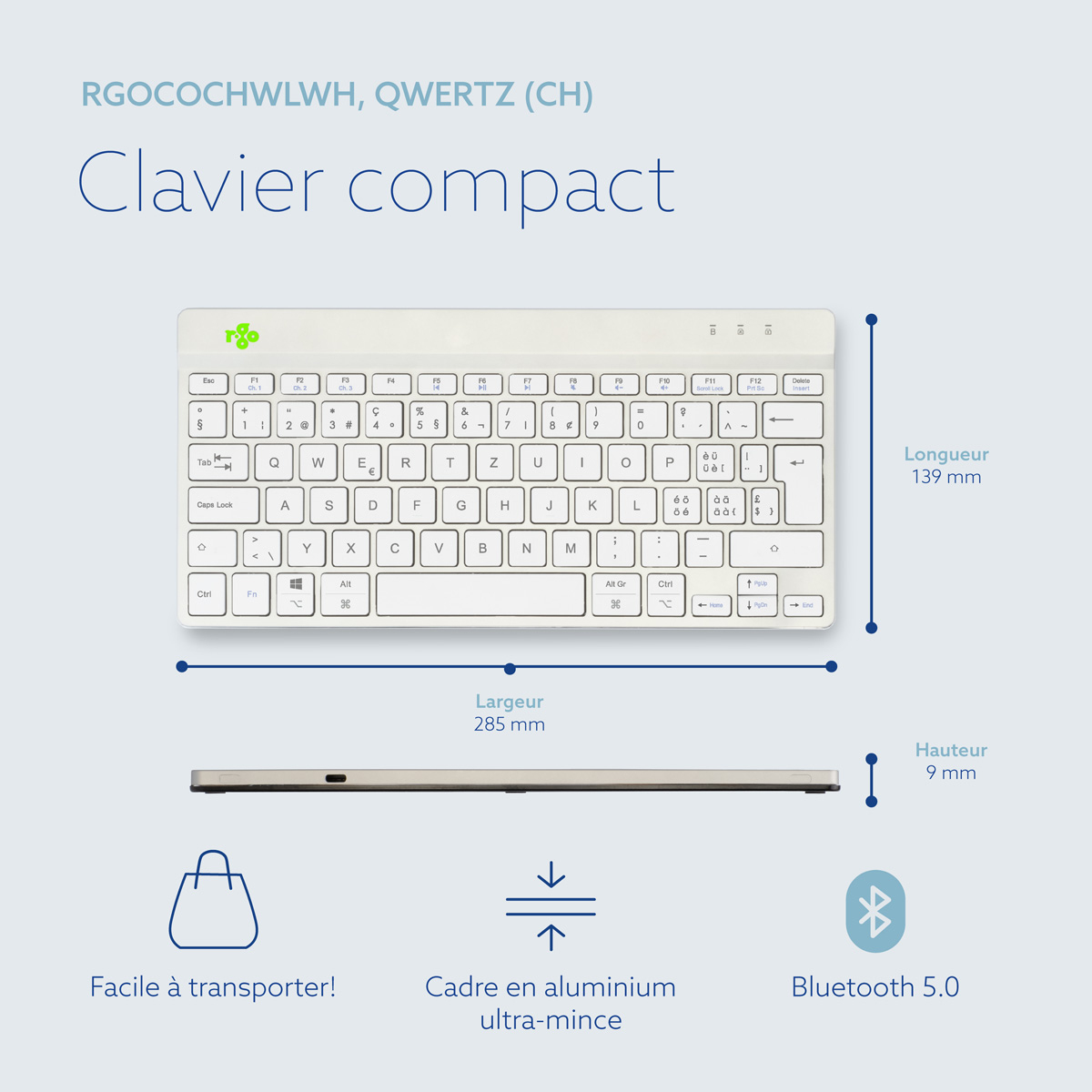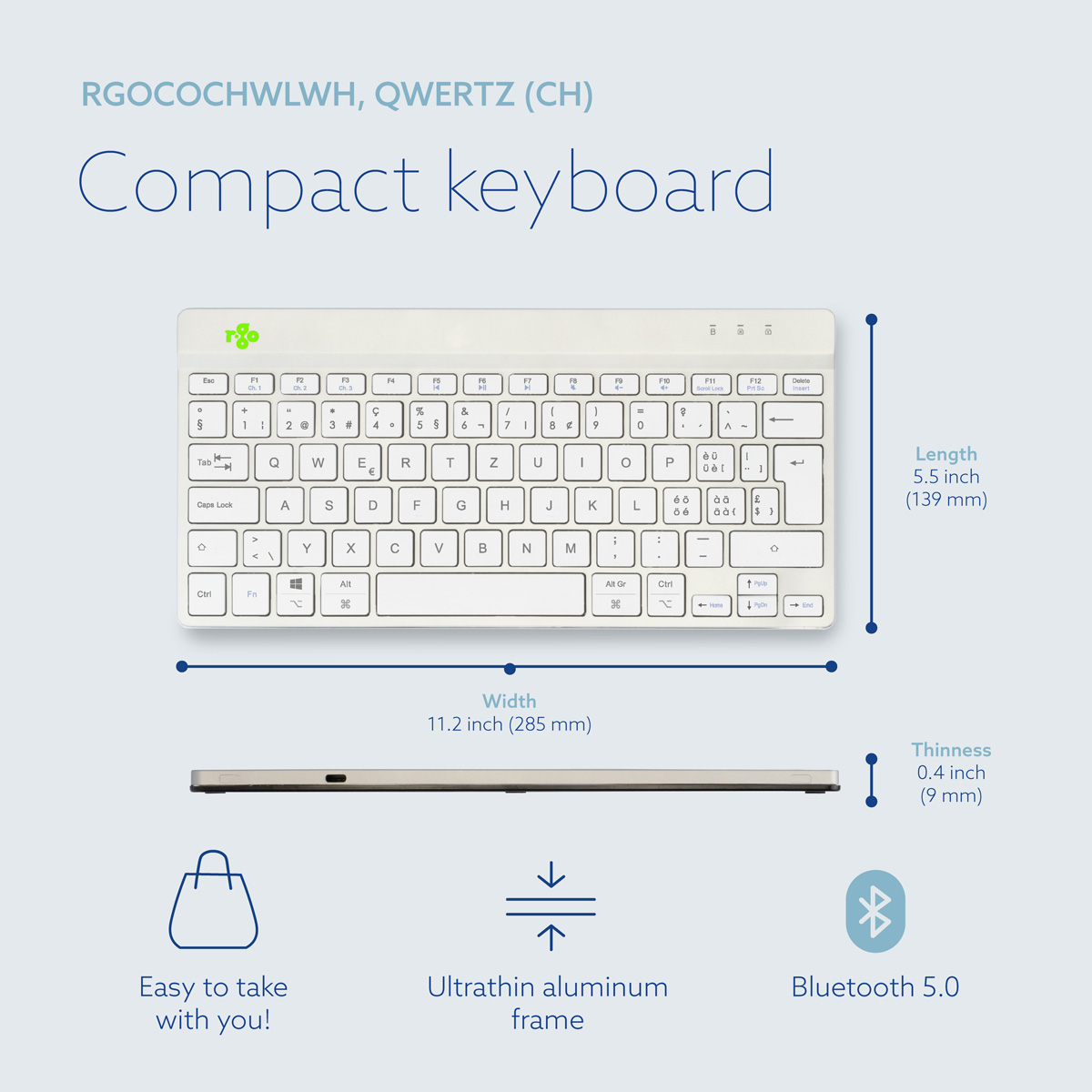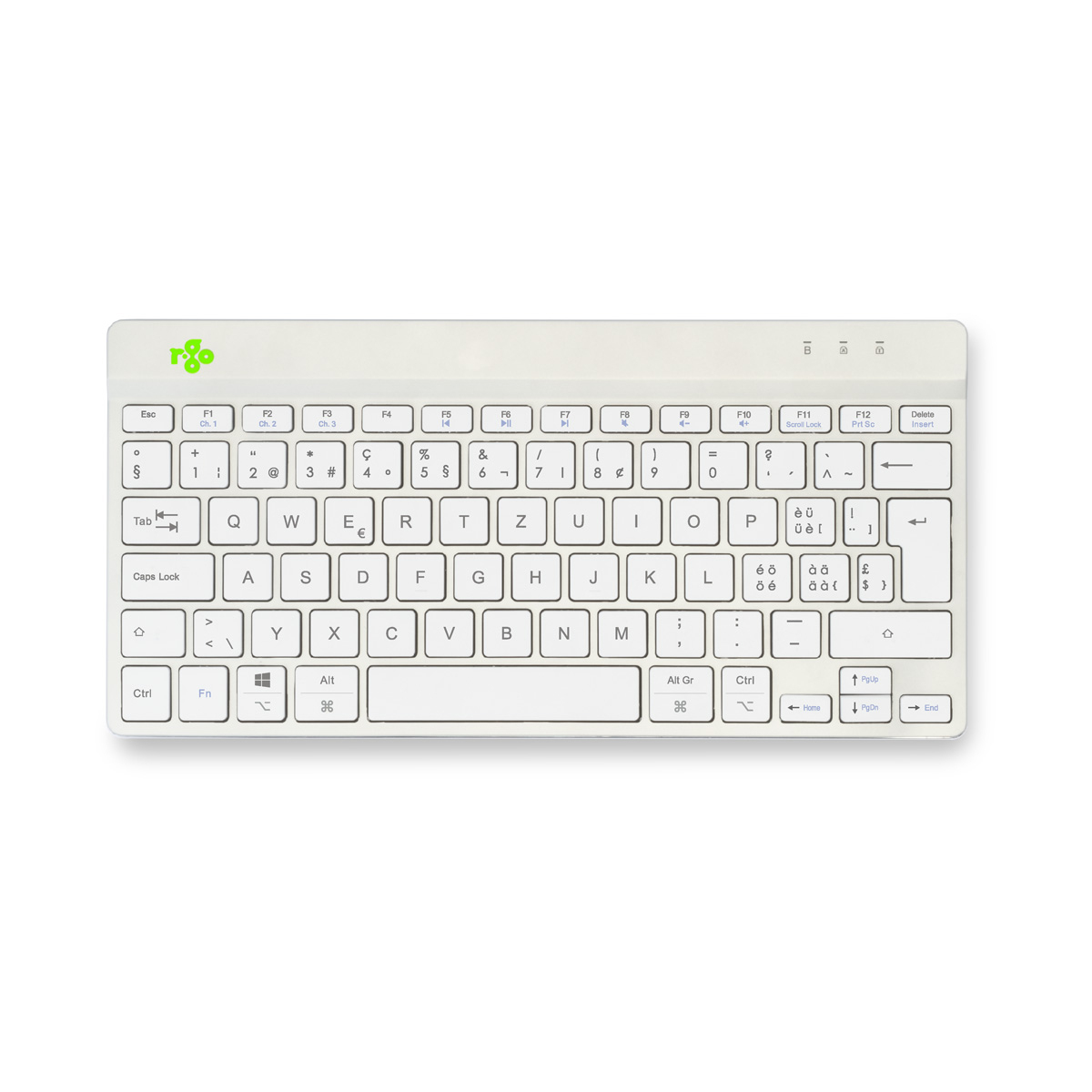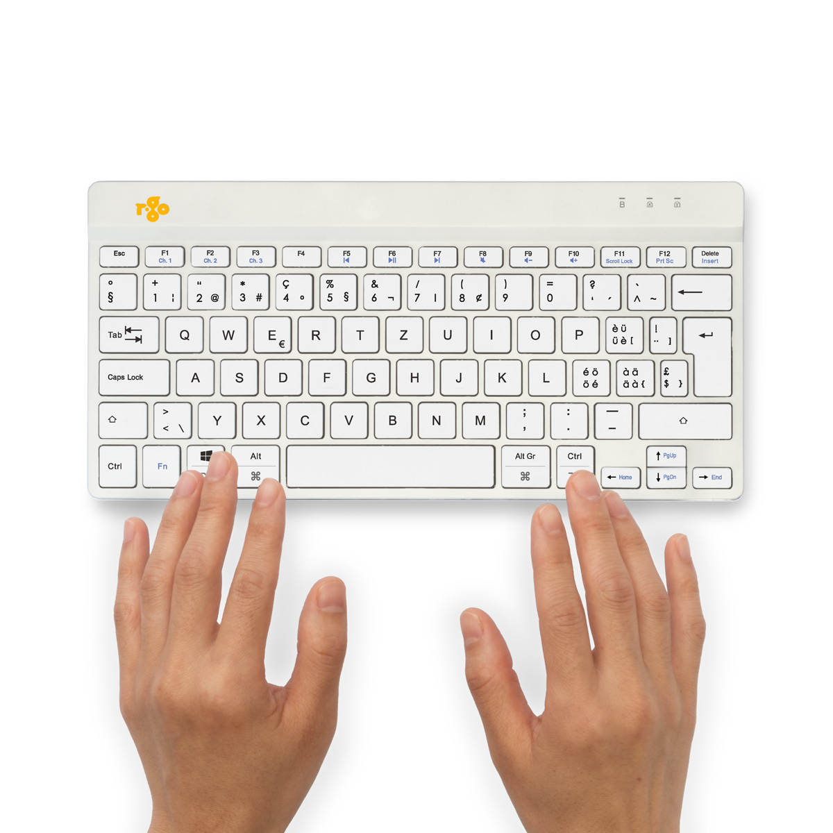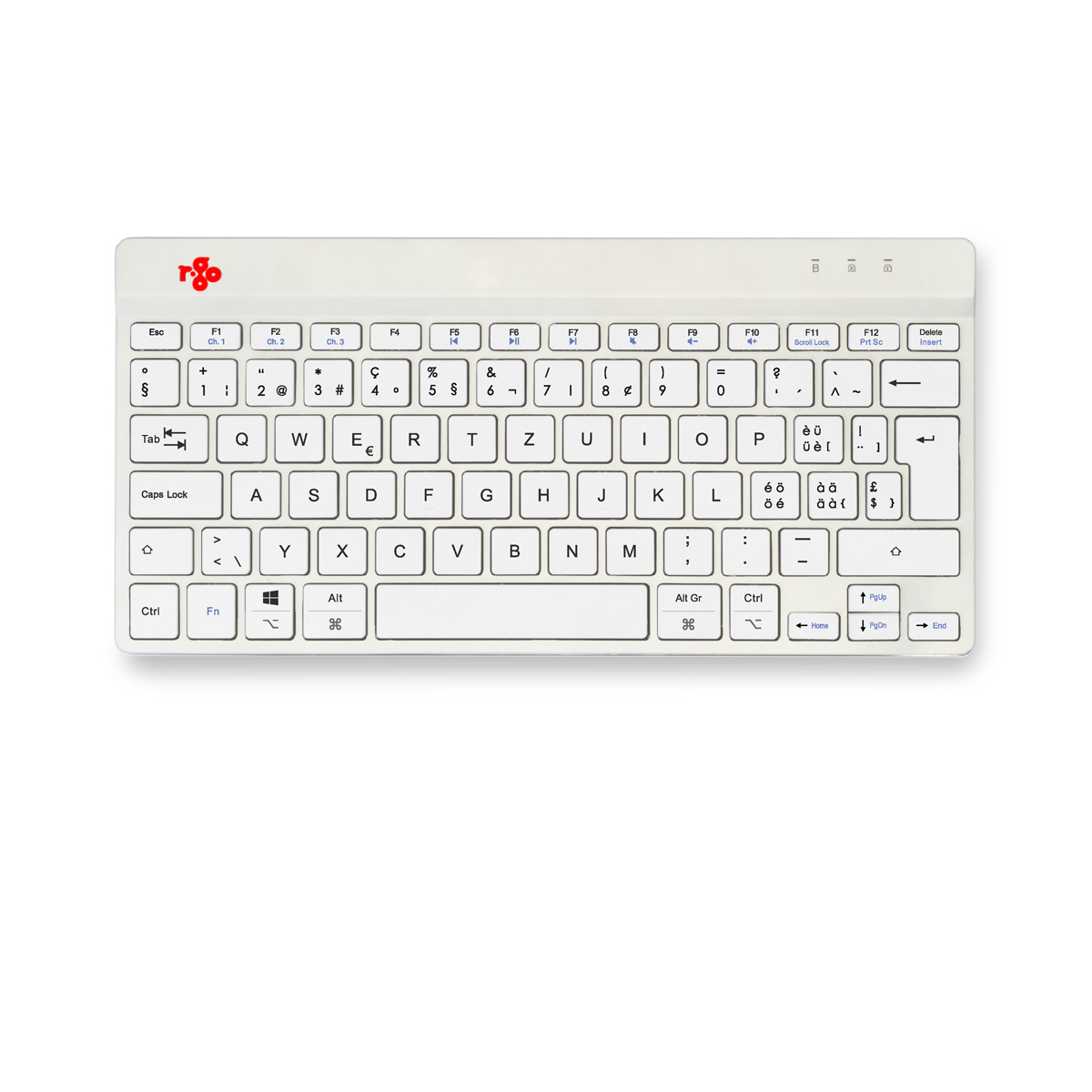 R-Go Tools Ergonomisch toetsenbord R-Go Compact Break, compact toetsenbord met pauzesoftware, QWERTZ (CH), Bluetooth, wit, Mini, Draadloos, Bluetooth, Schaar-toetsschakelaar, QWERTZ, Wit