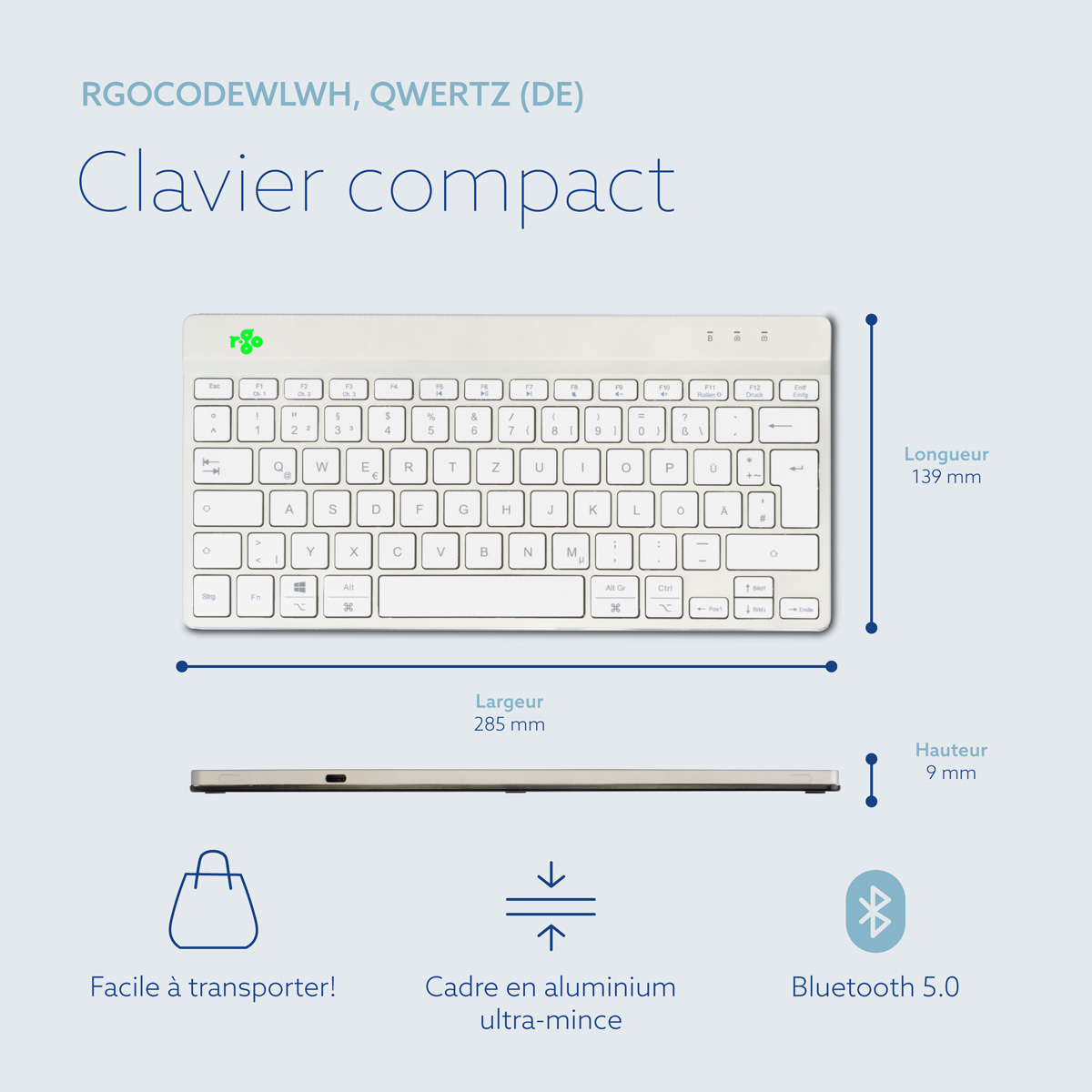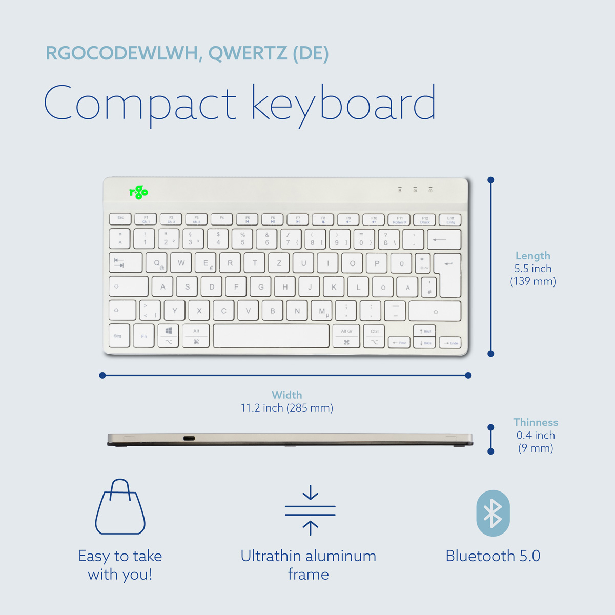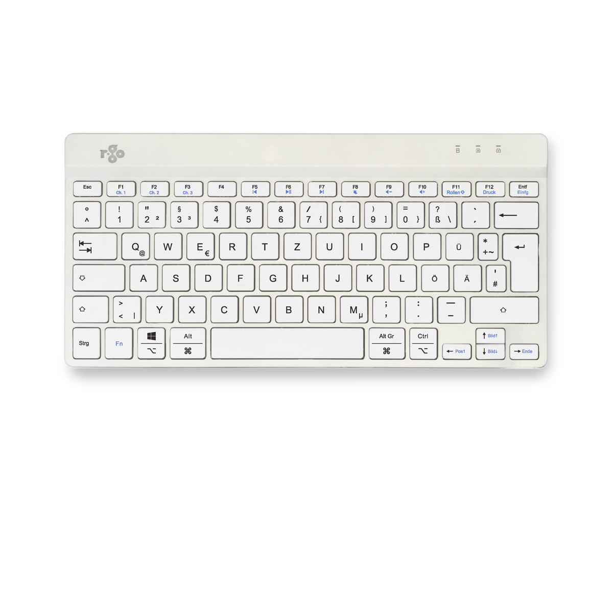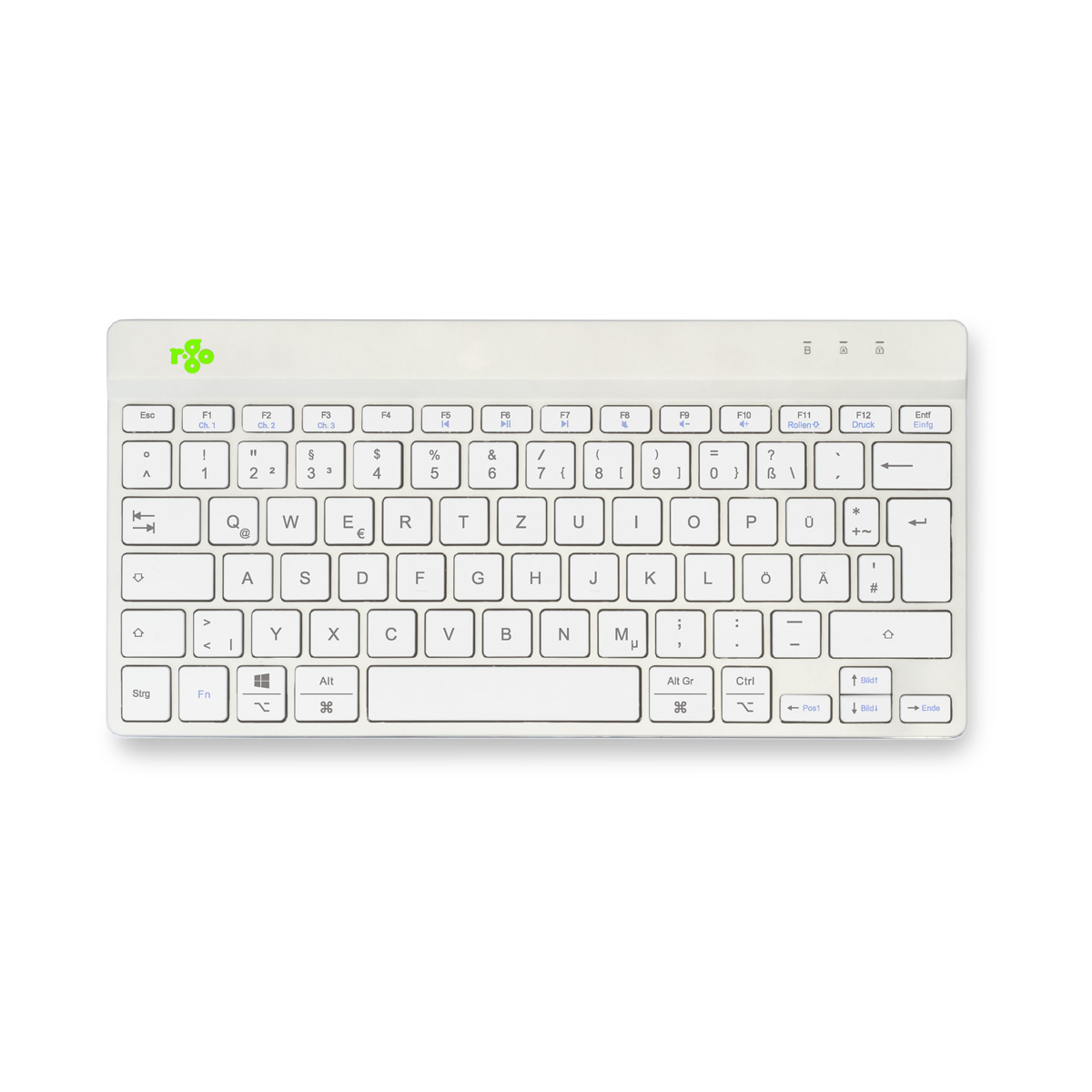 R-Go Tools Ergonomisch toetsenbord R-Go Compact Break, compact toetsenbord met pauzesoftware, QWERTZ (DE), Bluetooth, wit, Mini, Draadloos, Bluetooth, Schaar-toetsschakelaar, QWERTZ, Wit