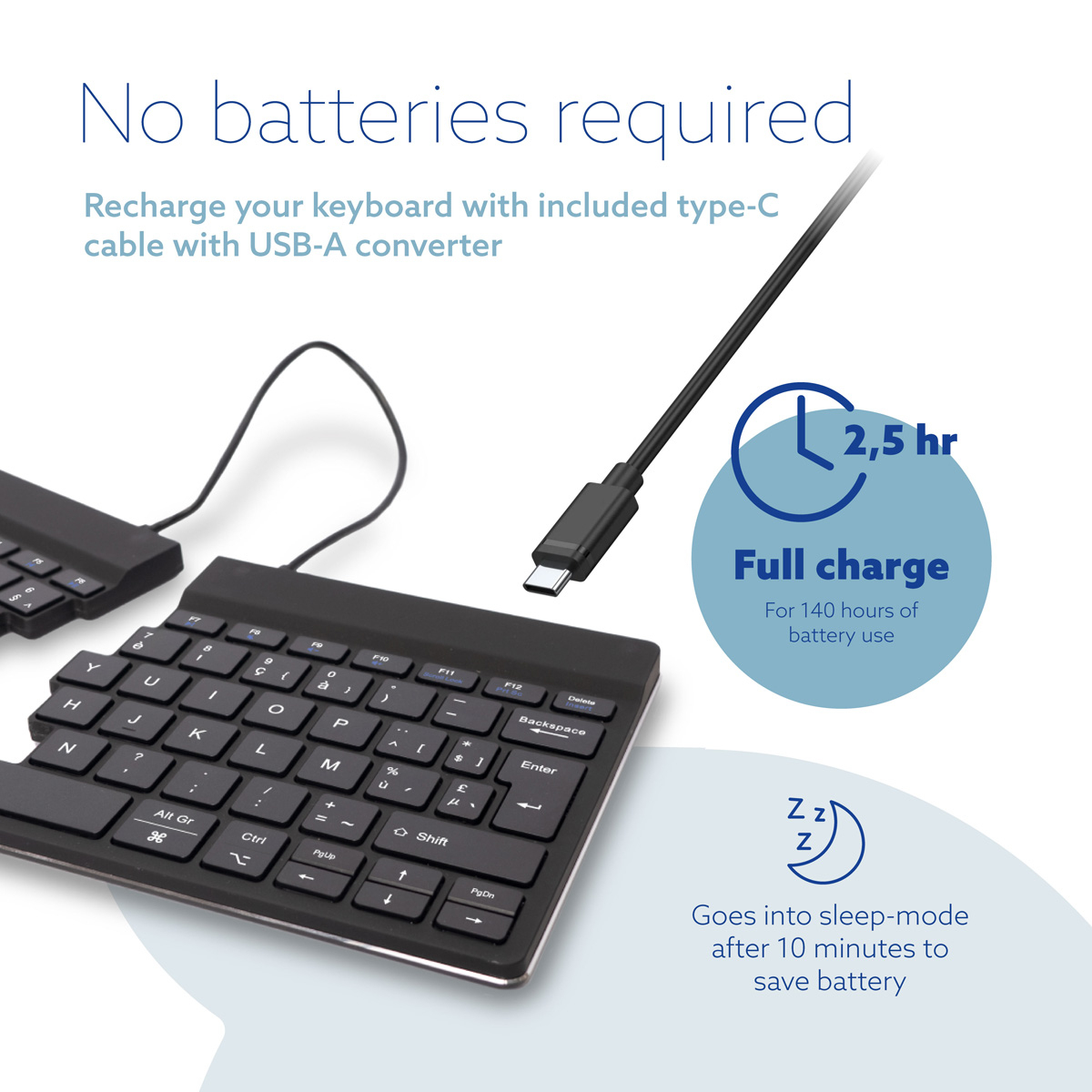 Ergonomisch toetsenbord R-Go Split Break met pauzesoftware, gesplitst toetsenbord, AZERTY (BE), Bluetooth, zwart