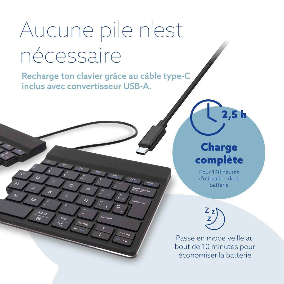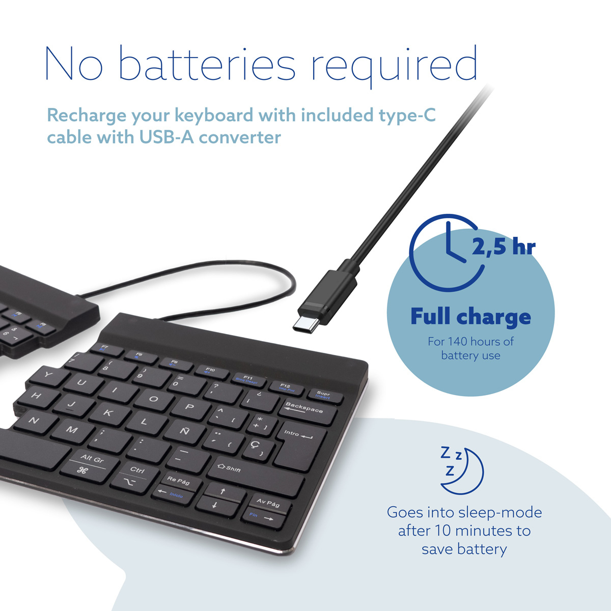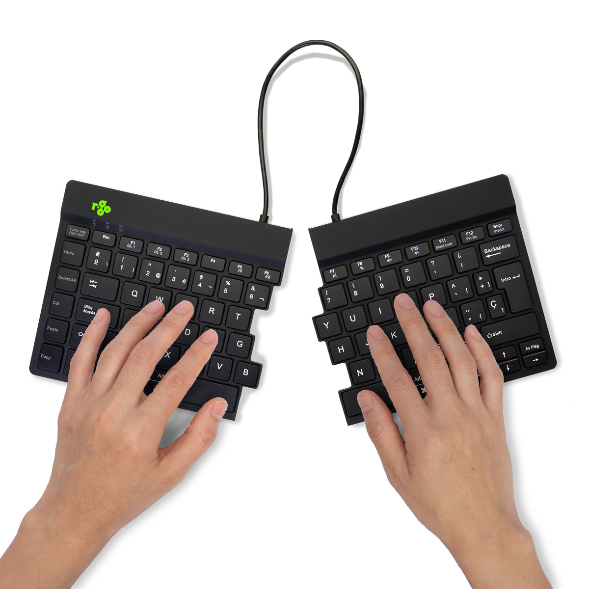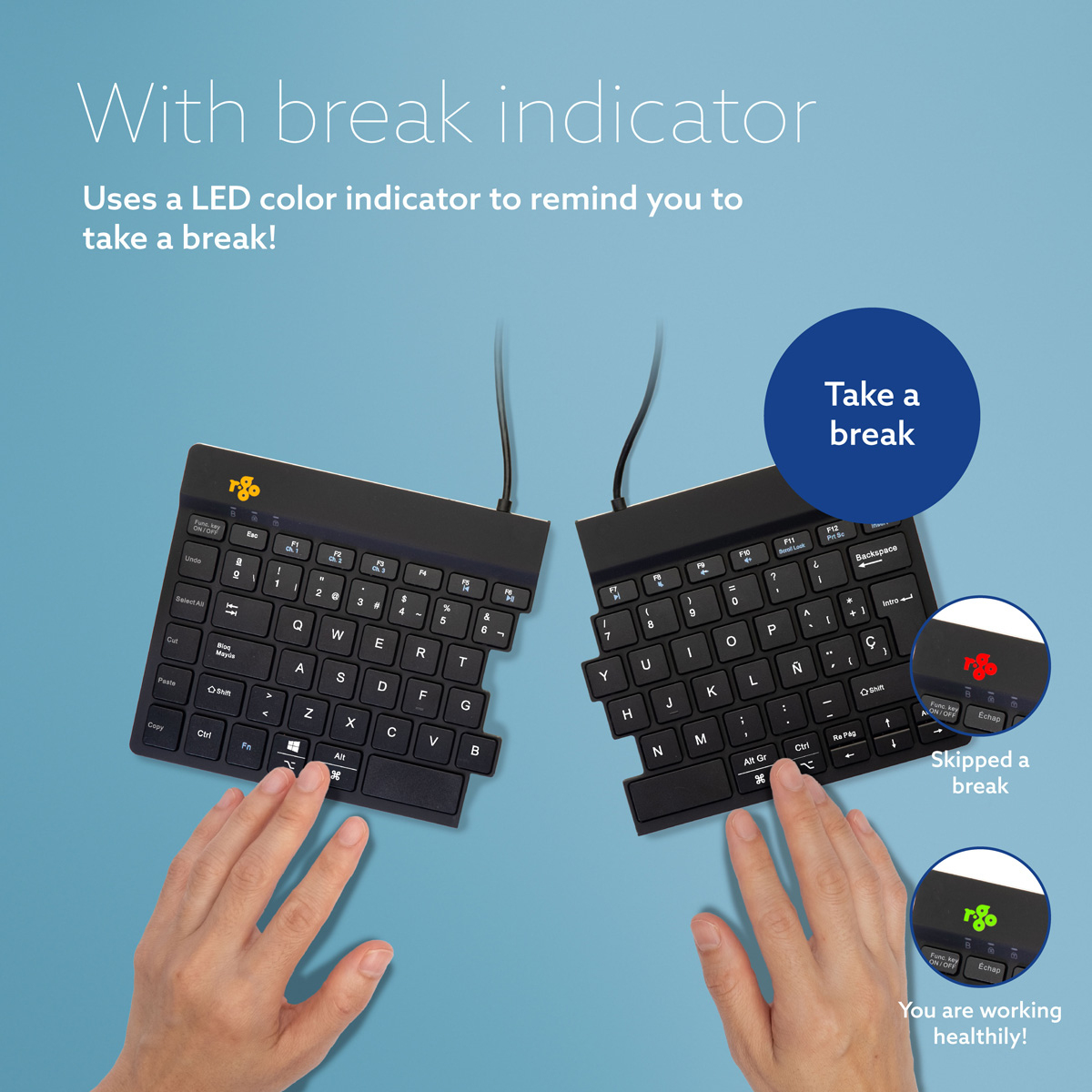 Ergonomisch toetsenbord R-Go Split Break met pauzesoftware, gesplitst toetsenbord, QWERTY (ES), Bluetooth, zwart