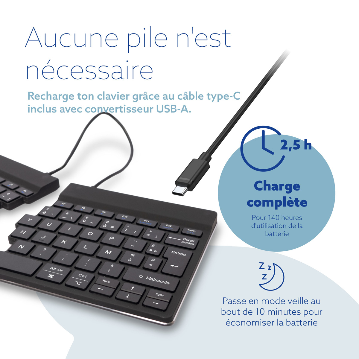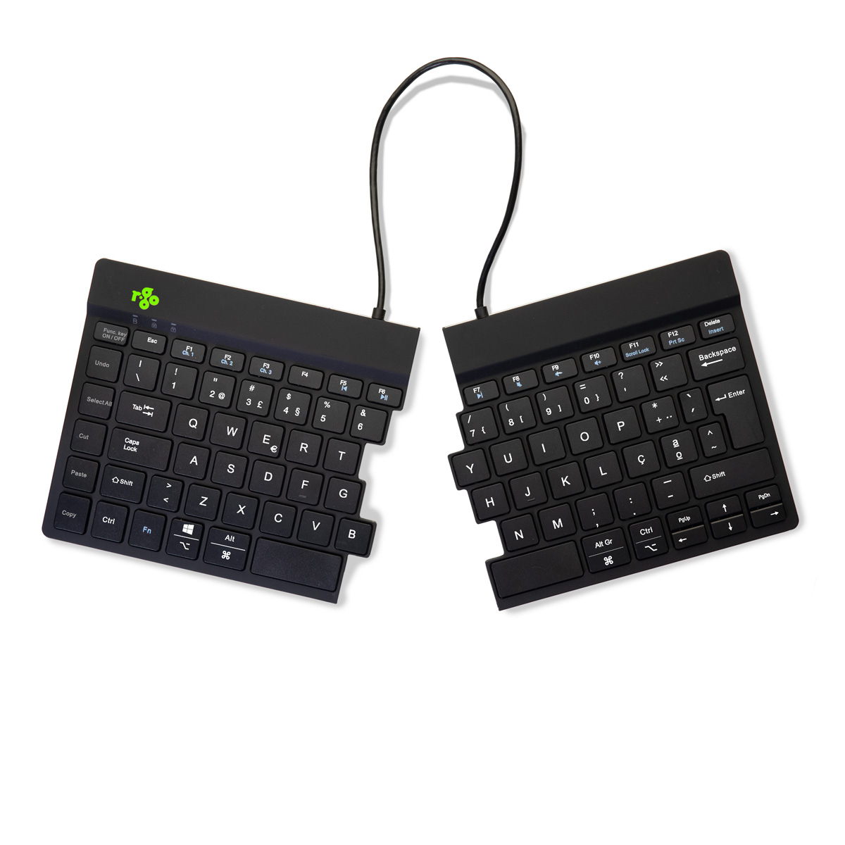 Ergonomisch toetsenbord R-Go Split Break met pauzesoftware, gesplitst toetsenbord, QWERTY (PT), Bluetooth, zwart