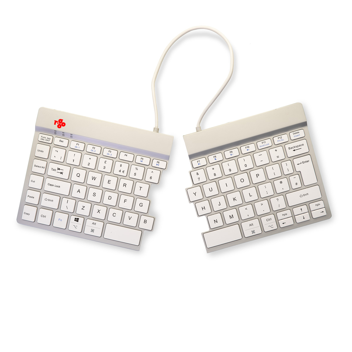 R-Go Tools Ergonomisch toetsenbord R-Go Split Break met pauzesoftware, gesplitst toetsenbord, QWERTY (UK), Bluetooth, wit, Mini, Draadloos, Bluetooth, Schaar-toetsschakelaar, QWERTY, Wit