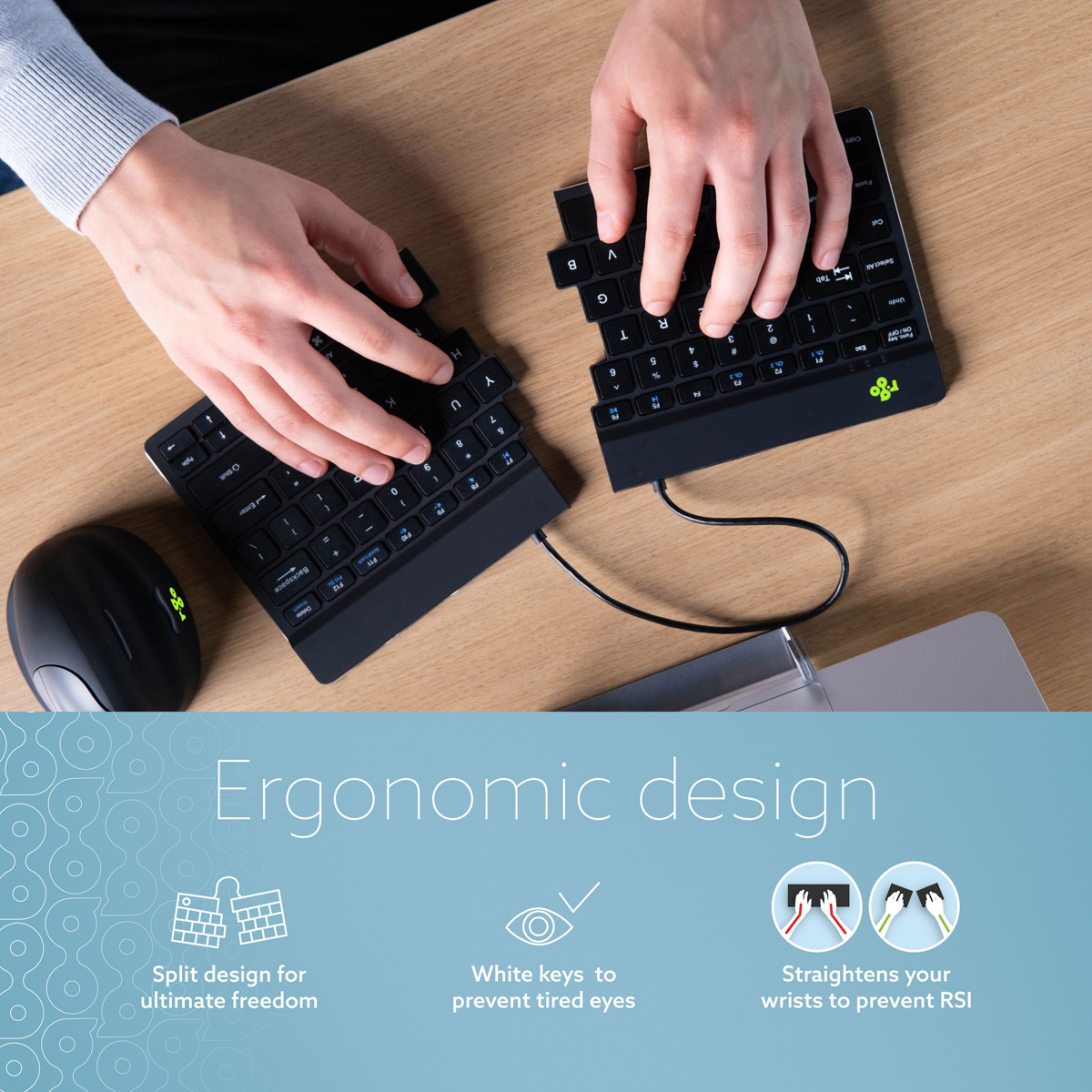 Ergonomisch toetsenbord R-Go Split Break met pauzesoftware, gesplitst toetsenbord, QWERTY (US), Bluetooth, zwart