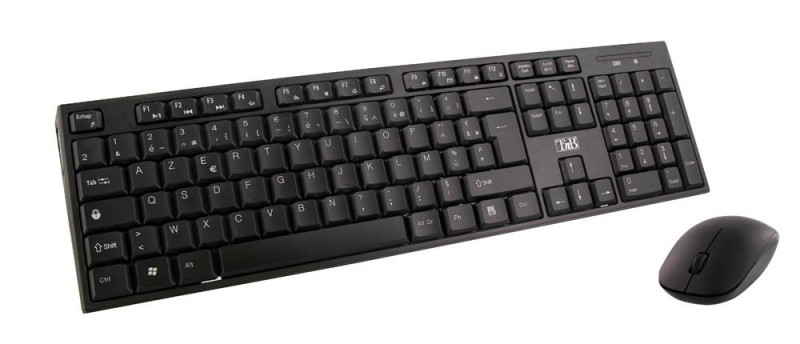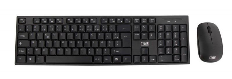 T'nB KBSCBK2. Toetsenbord formaat: Volledige grootte (100%). Stijl toetsenbord: Recht. Connectiviteitstechnologie: Bedraad en draadloos, Aansluiting: RF draadloos + USB, Toetsenbord toetsschakelaar: Membraan keyswitch, Toetsenbordindeling: AZERTY, Aantal toetsen, toetsenbord: 105, Aanbevolen gebruik: Thuis. Kleur van het product: Zwart. Inclusief muis