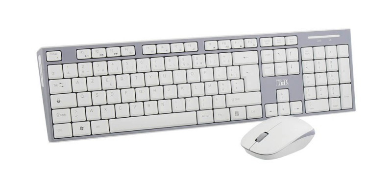 T'nB KBSCGR. Toetsenbord formaat: Volledige grootte (100%). Stijl toetsenbord: Recht. Connectiviteitstechnologie: Draadloos, Aansluiting: RF Draadloos, Toetsenbord toetsschakelaar: Mechanische keyswitch, Toetsenbordindeling: AZERTY, Aantal toetsen, toetsenbord: 105, Aanbevolen gebruik: Universeel. Kleur van het product: Grijs. Inclusief muis