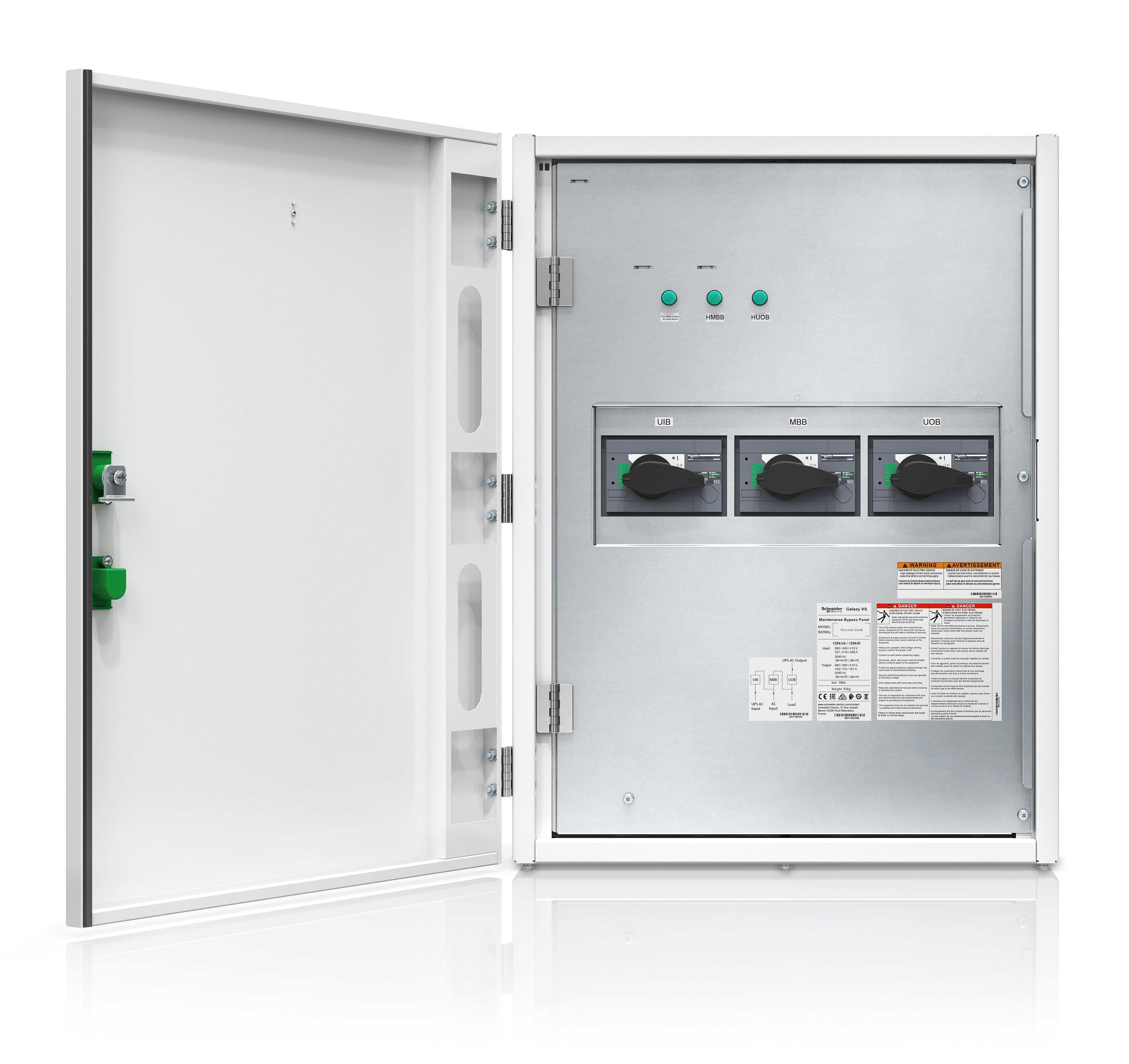 APC GVSBPSU80K120H. Montagewijze: Wandmontage, Kleur van het product: Wit. Ingangsspanning: 400 V. Certificaten van naleving: RoHS, Certificering: REACH. Breedte: 600 mm, Diepte: 280 mm, Hoogte: 800 mm. Aantal per verpakking: 1 stuk(s)