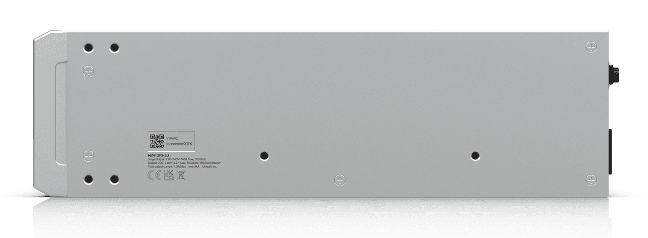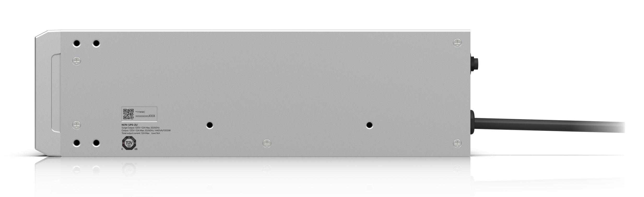 Ubiquiti UPS-2U. UPS-topologie: Line-interactive, Output power capacity: 1,5 kVA, Uitgangsvermogen: 1000 W. Stopcontacttypes: C13 stekker, C14 stekker, Stekker: NEMA 5-15P, Aantal AC uitgangen: 8 AC-uitgang(en). Batterijtechnologie: Lood-zuur, Batterij capaciteit: 9 Ah, Accu/Batterij voltage: 12 V. Vormfactor: Rackmontage, Kleur van het product: Grijs, Materiaal behuizing: Staal. Certificaten van naleving: CE