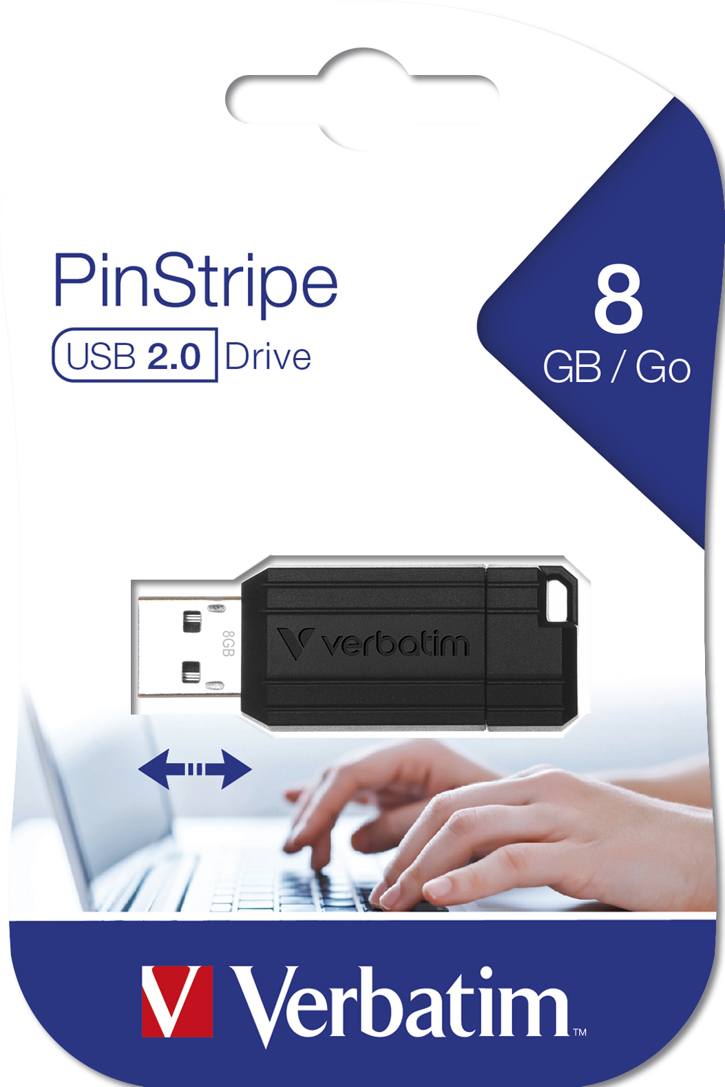 Verbatim PinStripe - USB-Stick8 GB - Zwart, 8 GB, USB Type-A, 2.0, 10 MB/s, Glij, Zwart