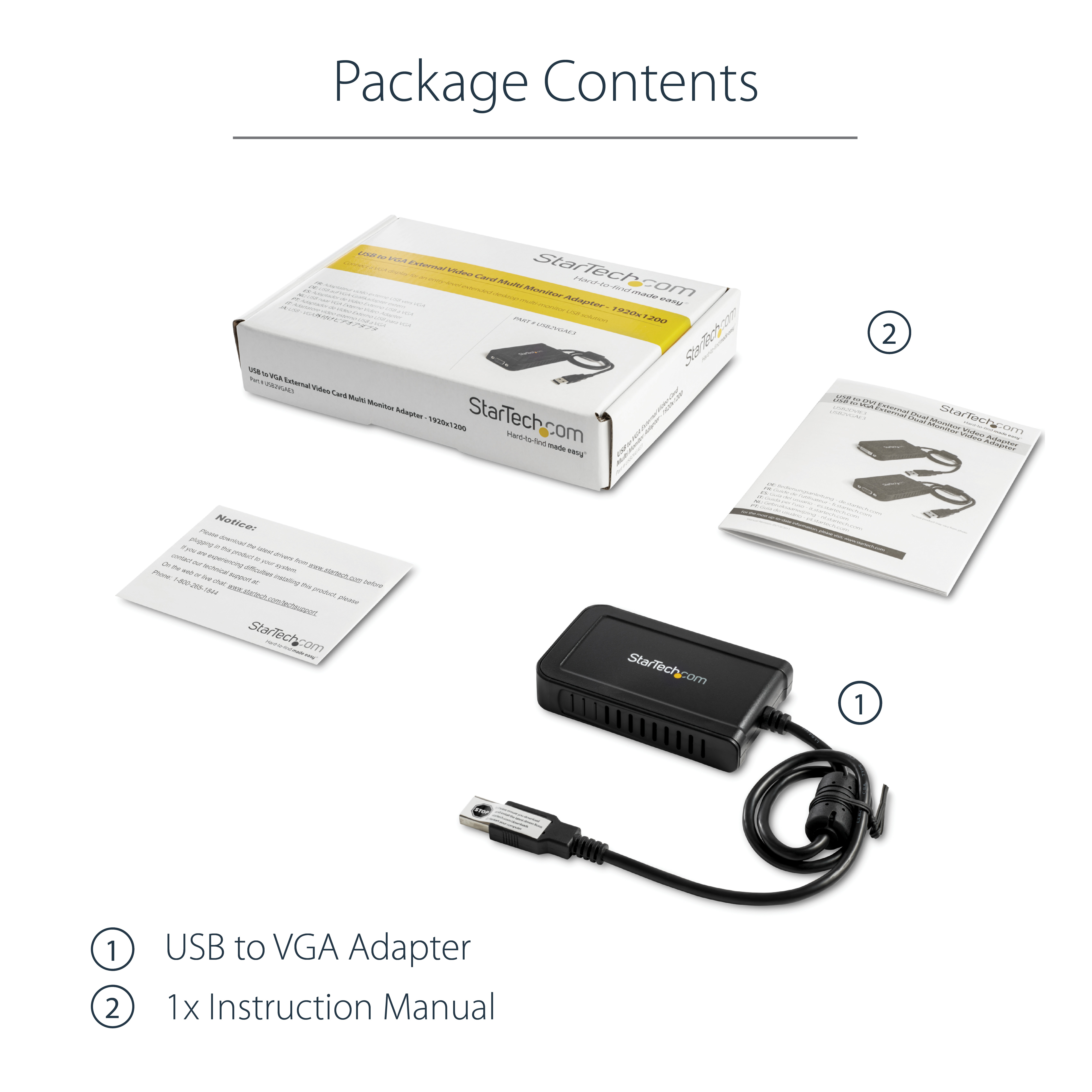 StarTech.com USB naar VGA Externe Videokaart Multi Monitor Adapter 1920x1200, 2.0, USB Type-A, VGA (D-Sub)-uitgang, 1920 x 1200 Pixels