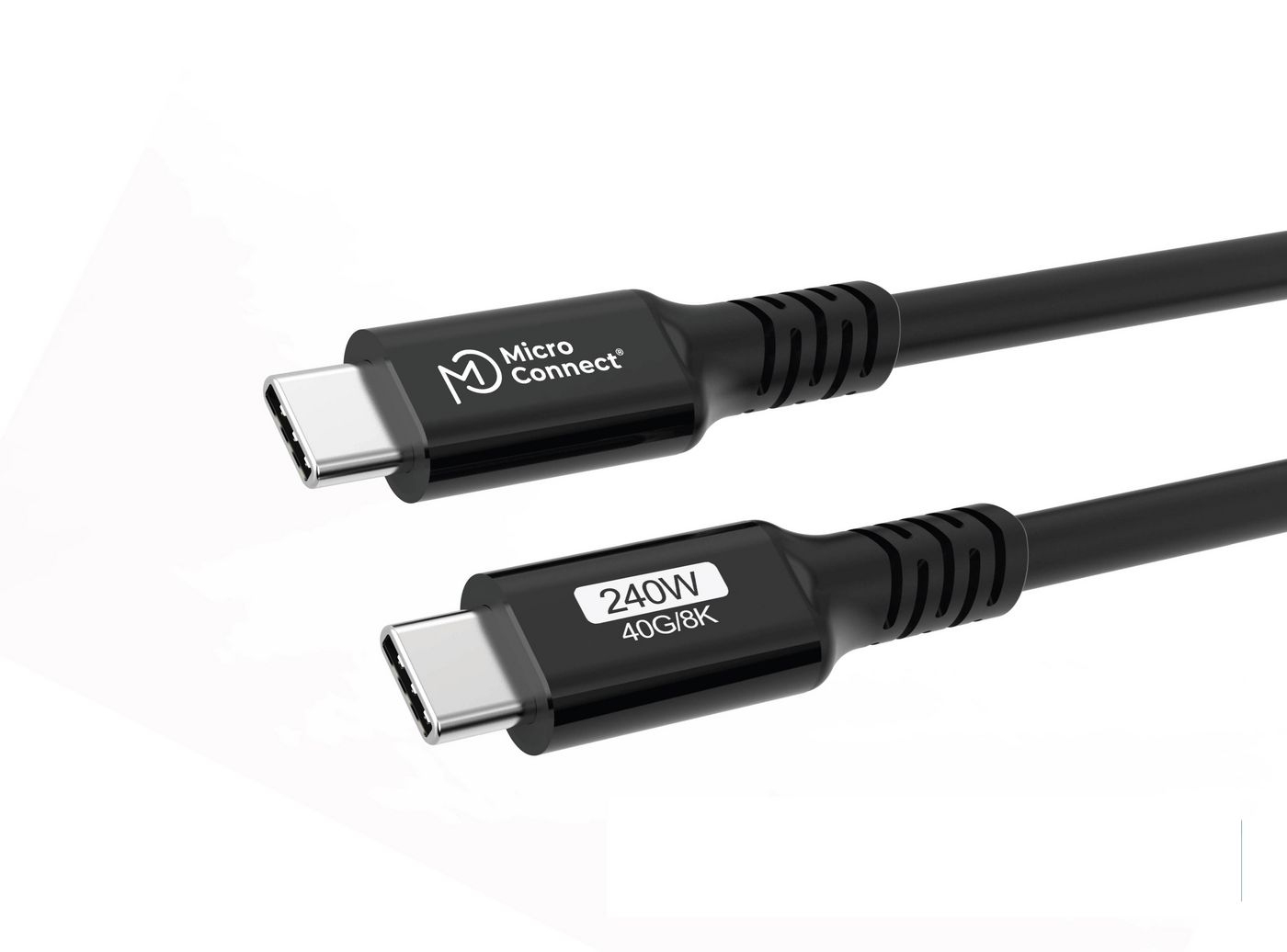 Microconnect USB4CC015-240W. Snoerlengte: 0,15 m. Aansluiting 1: USB C, Aansluiting 2: USB C, USB-versie: USB4 Gen 3x2, Max. overdrachtssnelheid: 40 Gbit/s, Kleur van het product: Zwart