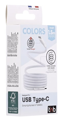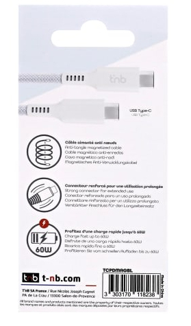 T'nB TCPDMAGBL. Snoerlengte: 1,5 m. Aansluiting 1: USB C, Aansluiting 2: USB C, USB-versie: USB 3.2 Gen 1 (3.1 Gen 1), Kleur van het product: Blauw, Wit